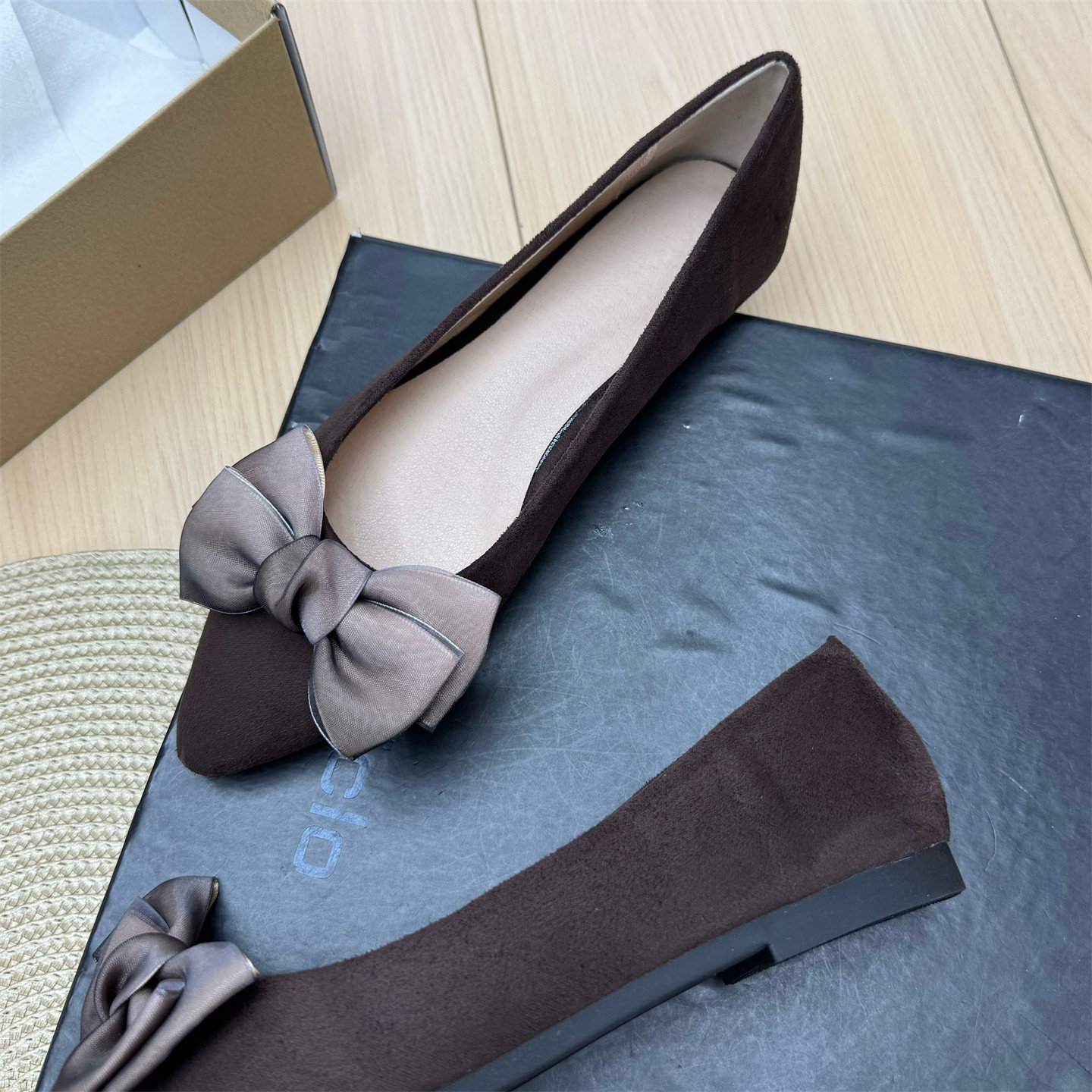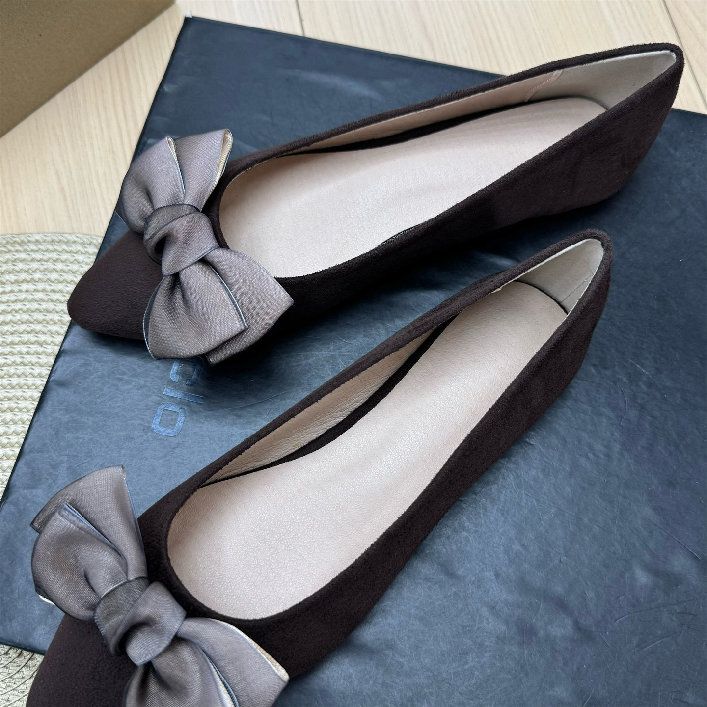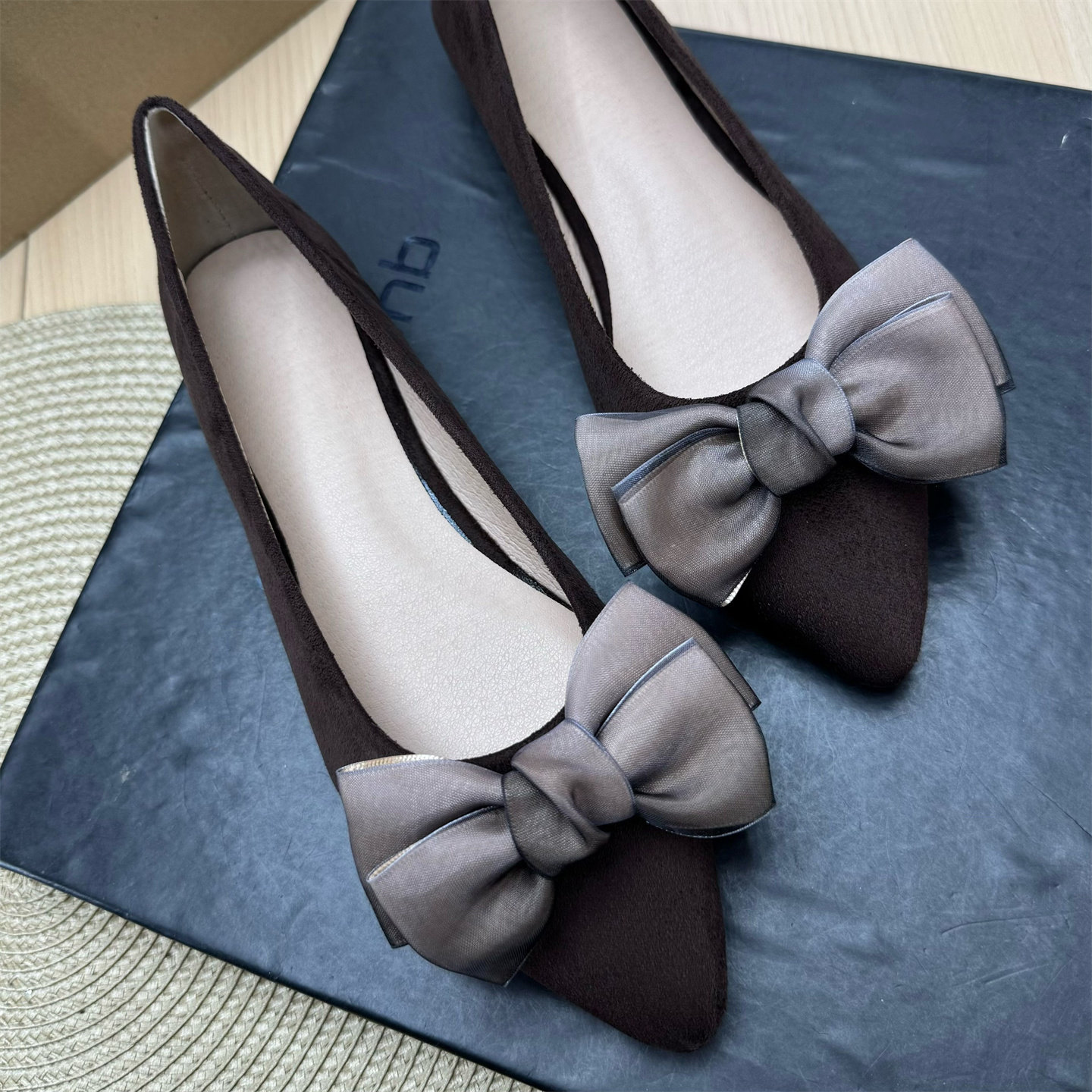 2026年春新款法式气质平底鞋浅口蝴蝶结尖头百搭单鞋女一脚蹬瓢鞋