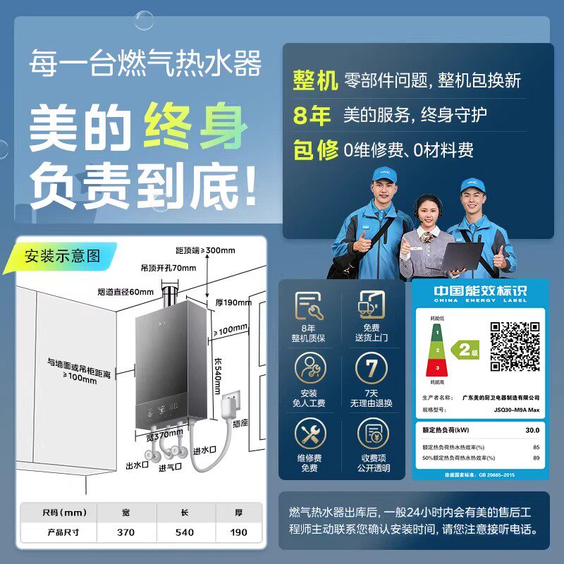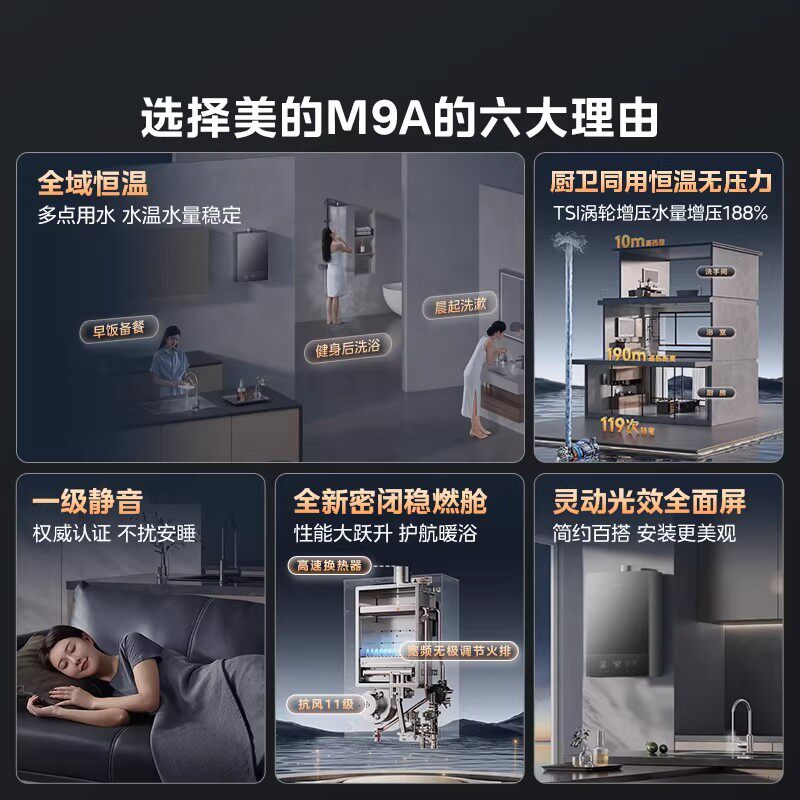 美的燃气热水器家用天然气16升三驱瞬调水伺服恒温安睡静音M9Amax