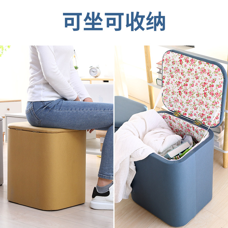 多功能收纳凳实木科技布沙发人可坐储物凳子家用柜门口椅子箱换鞋