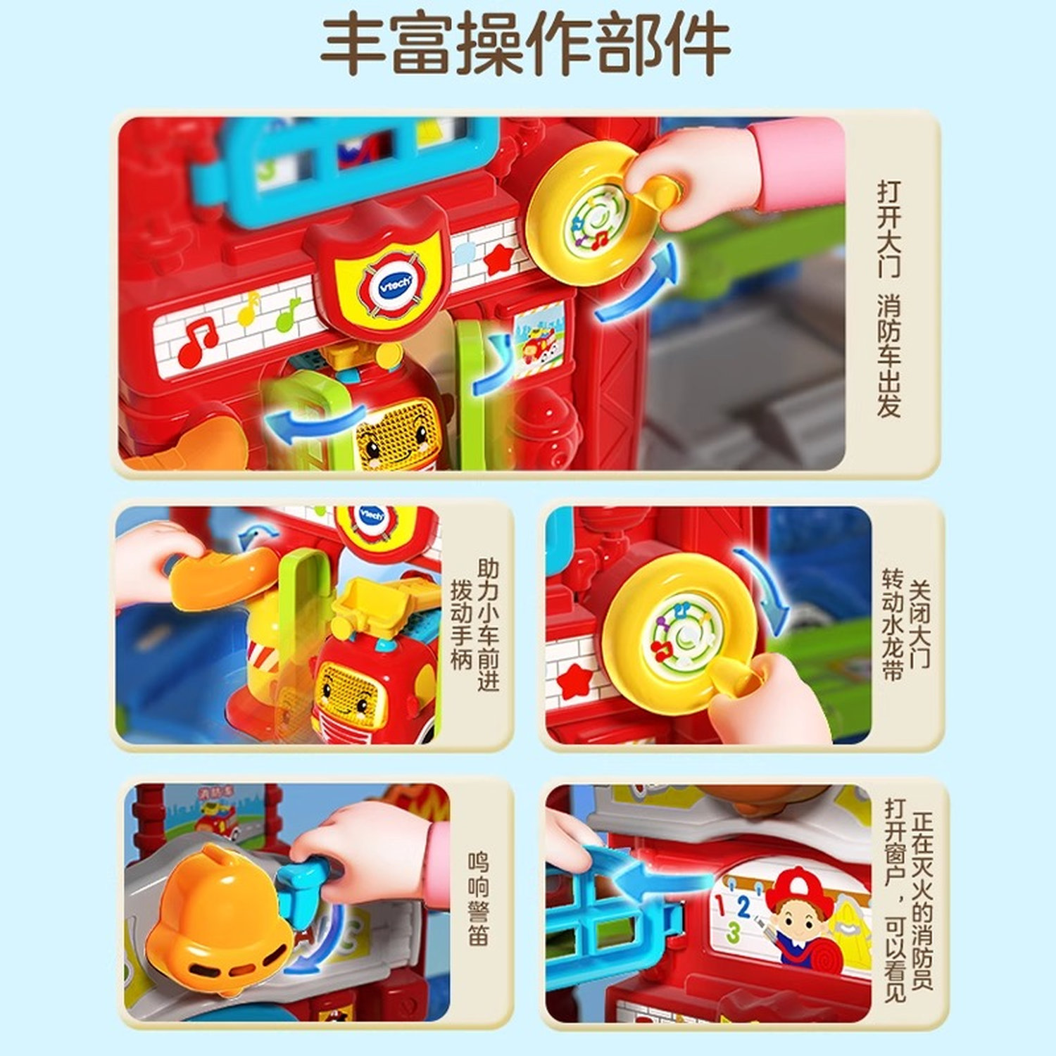 伟易达轨道车声光拯救消防局汽车赛车滑道儿童电梯消防车益智玩具