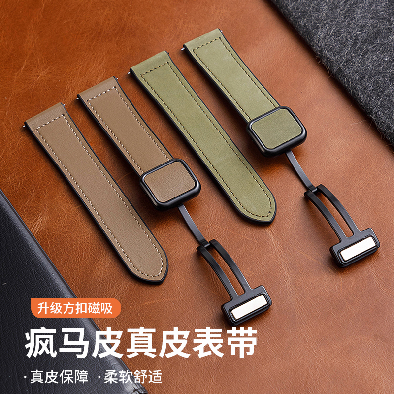 手表带真皮男款疯马皮磁吸扣硅胶手表链代用天梭卡西欧天王DW浪琴