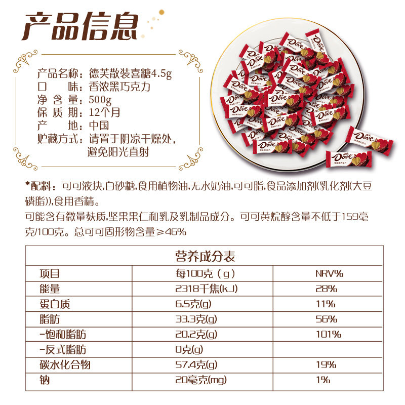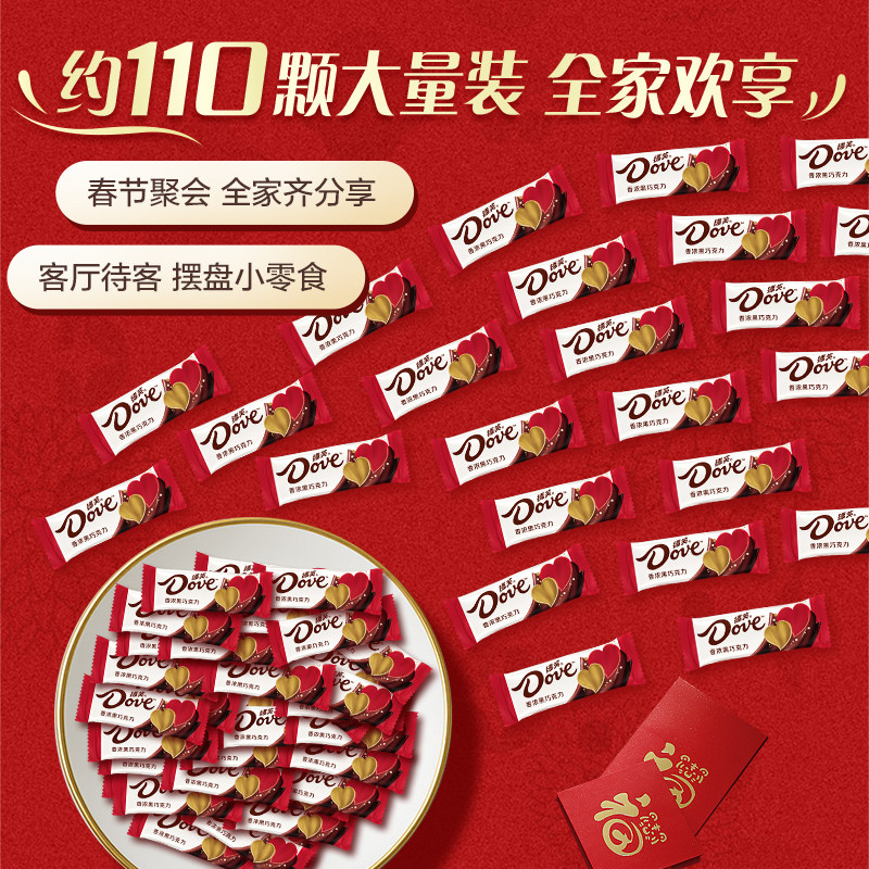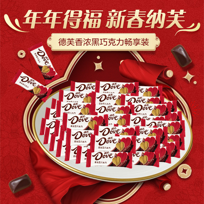 德芙4.5g香浓黑年货巧克力500g*1袋订结婚庆喜糖果休闲零食伴手礼