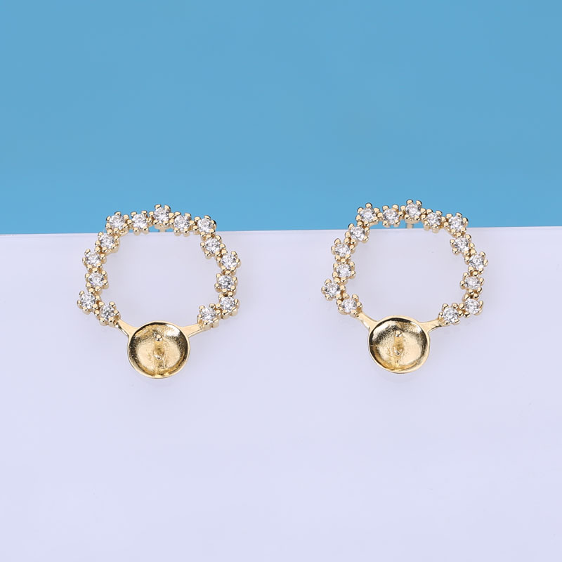 DIY珍珠配件s925纯银微镶日系精工时尚耳钉耳环耳饰空托女配饰品