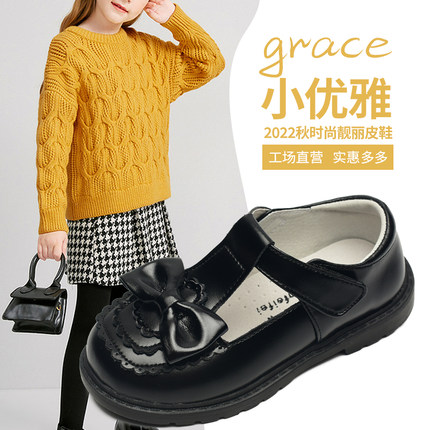 2025春秋时尚女童气质个性单鞋圆头公主童鞋蝴蝶鞋时尚潮流学生鞋