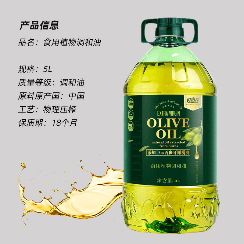 橄榄食用油含初榨橄榄油调和油5L大桶家用非转植物油基因家用包邮