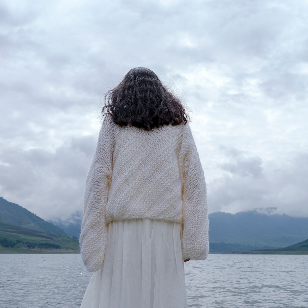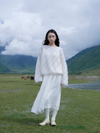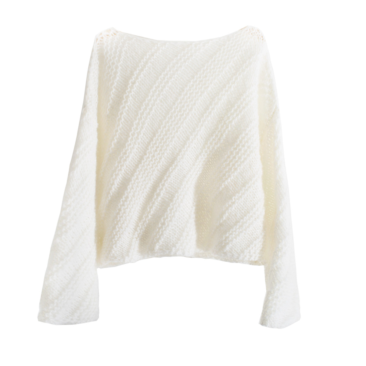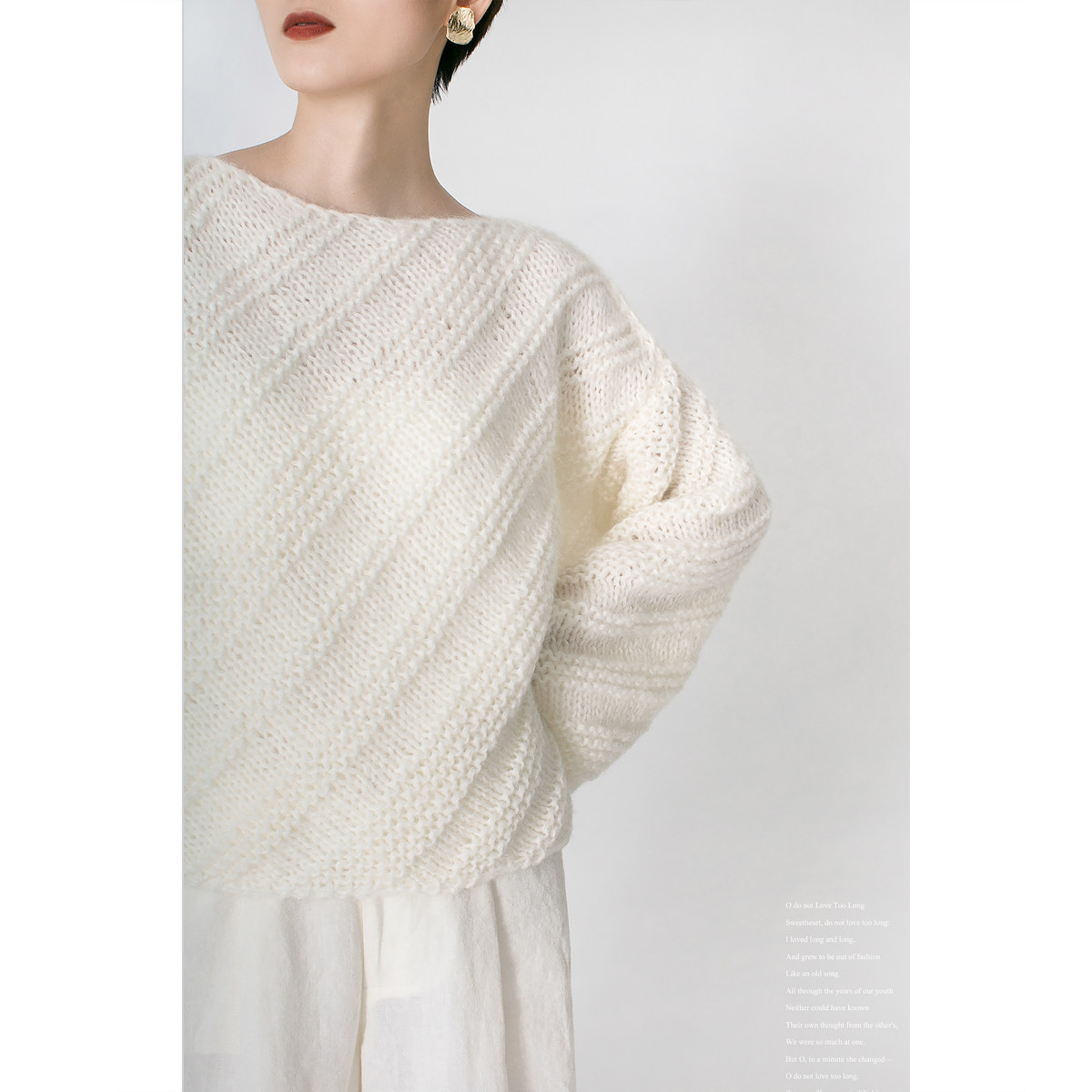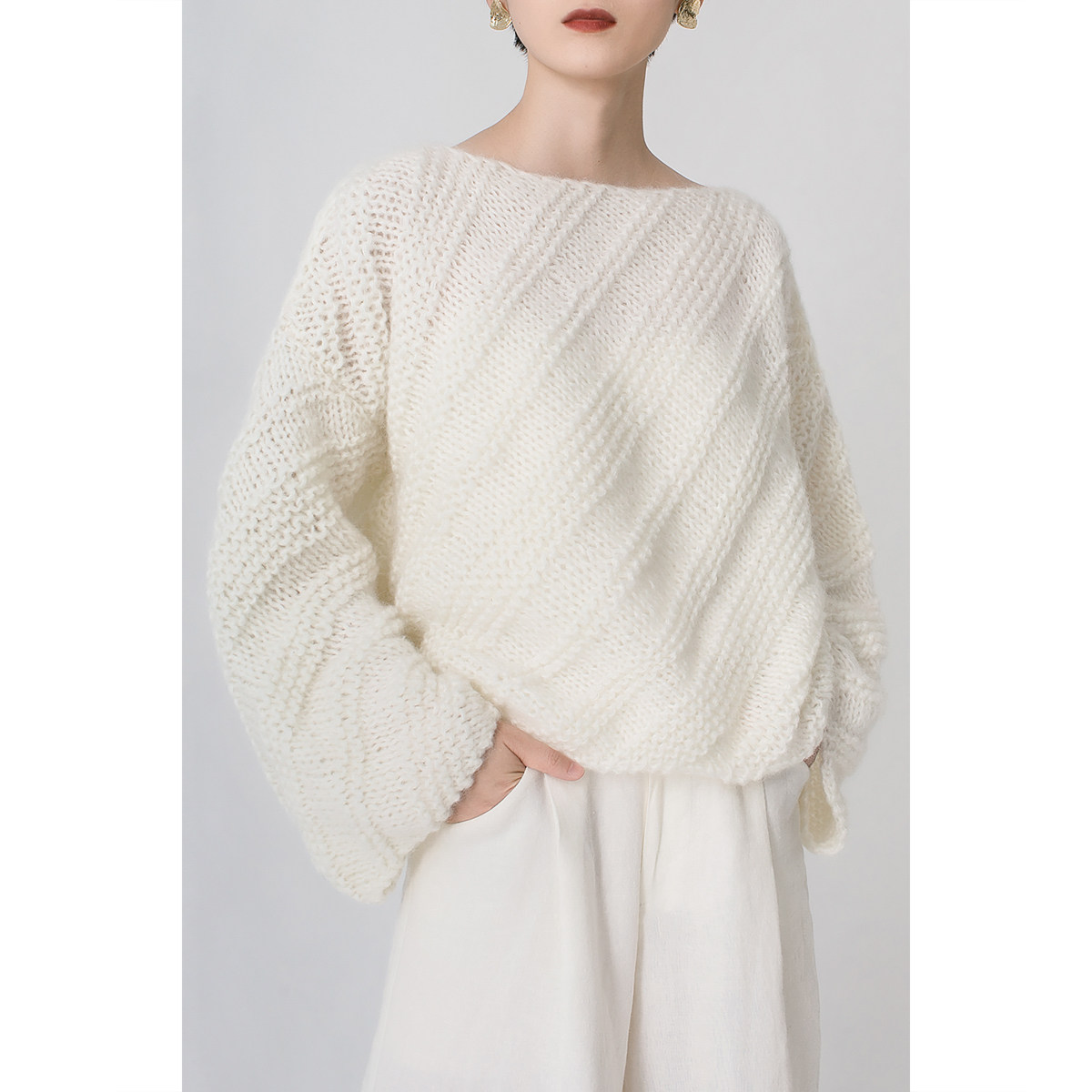 原隐YuanYin复古套头白色秋法式手织毛衣慵懒ins粗棒马海毛上衣女