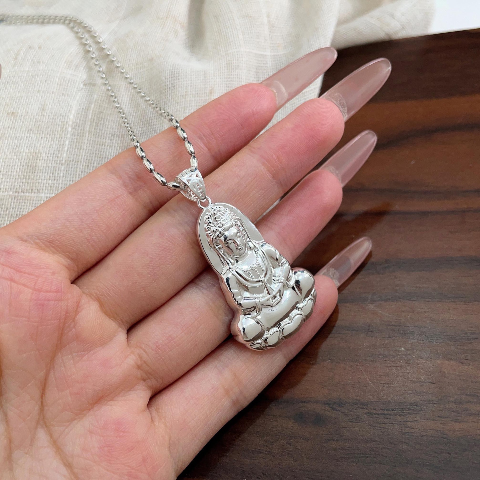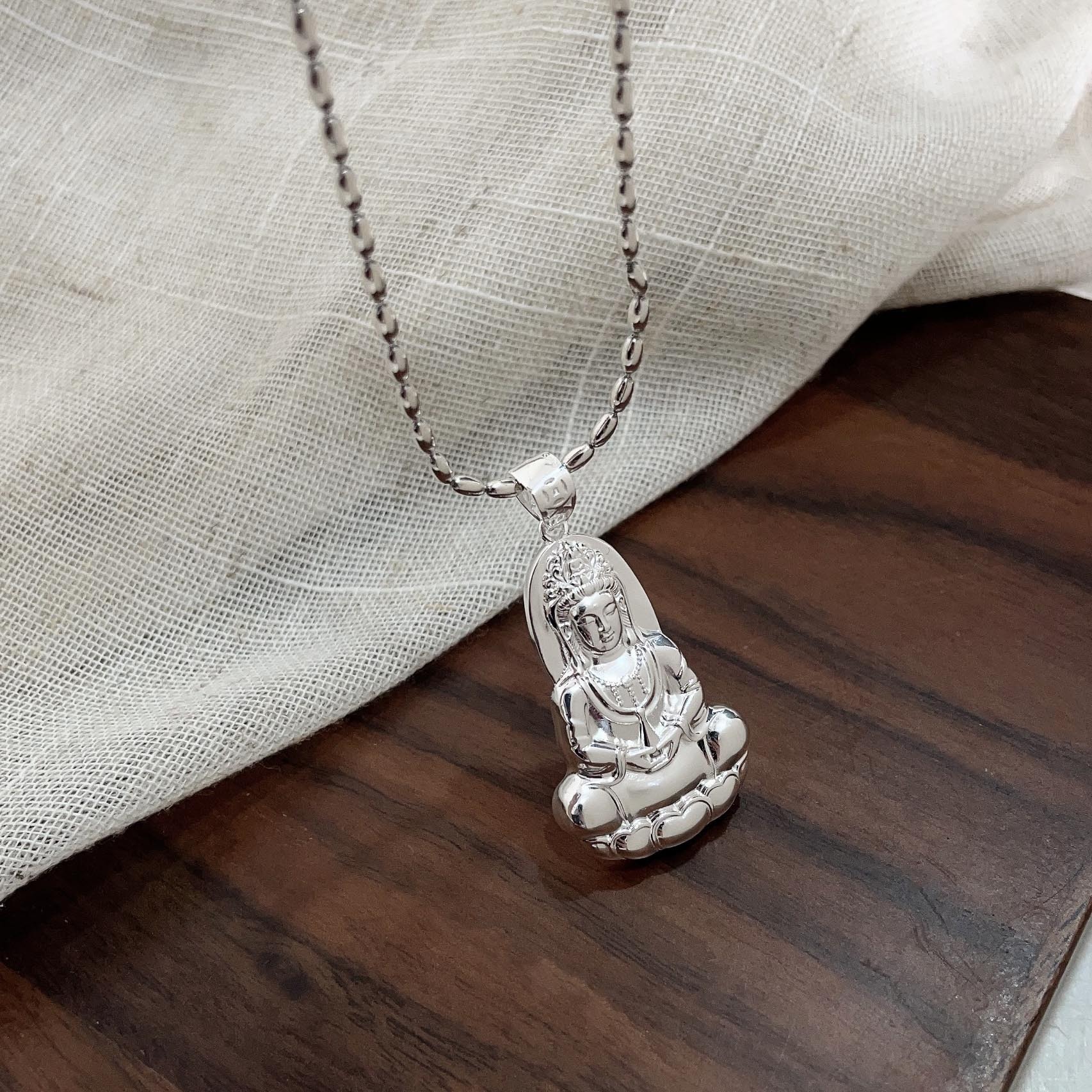 s925纯银观音菩萨吊坠民族风挂件项链镀白金保平安男守护神送朋友