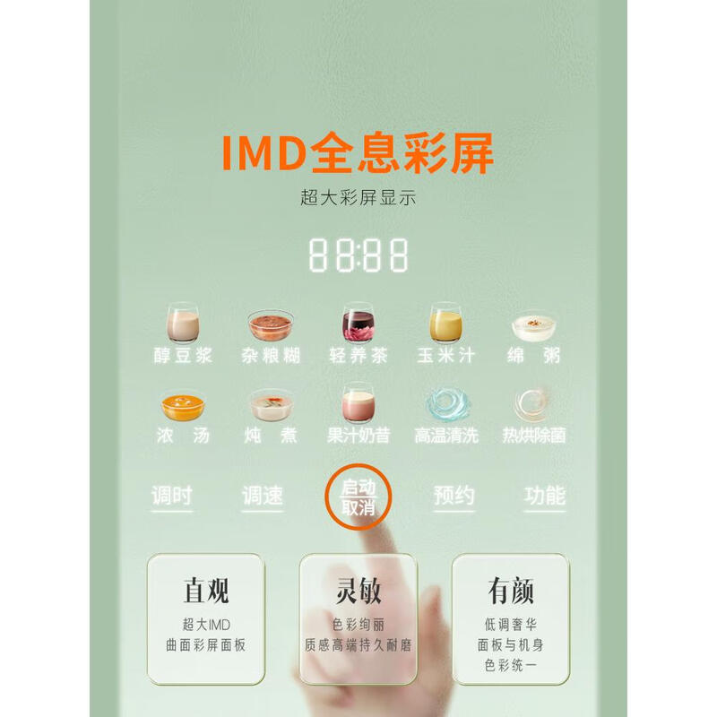 九阳破壁机家用豆浆机隔音罩轻音五谷杂粮辅食料理机玉簪绿[P919]