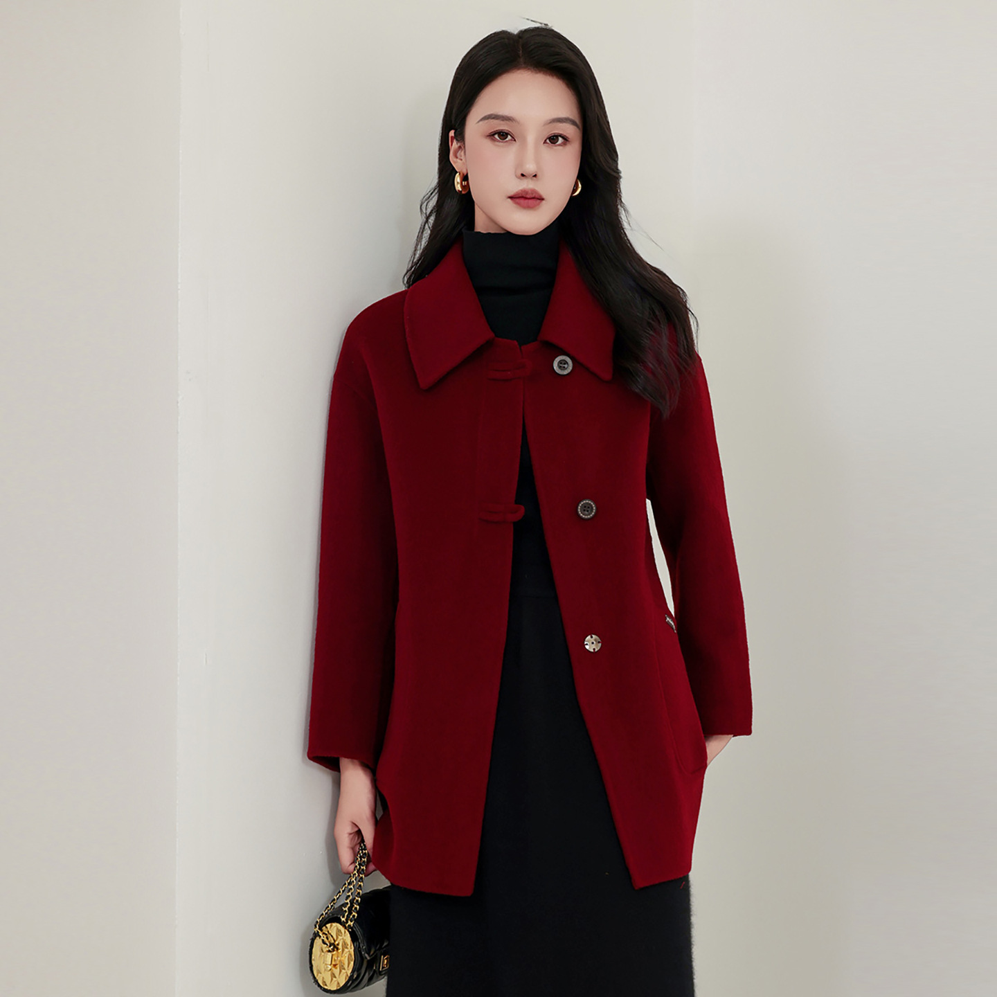 妈妈装双面羊绒大衣女羊毛呢外套宽松中长款开衫呢大衣中老年