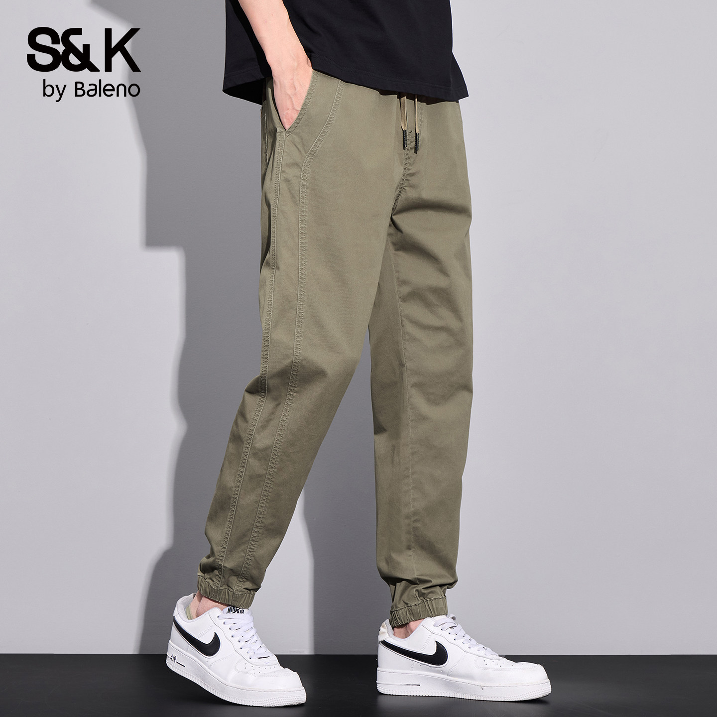 班尼路SK男士休闲裤2025秋冬季束脚九分加厚加绒宽松百搭工装裤YS