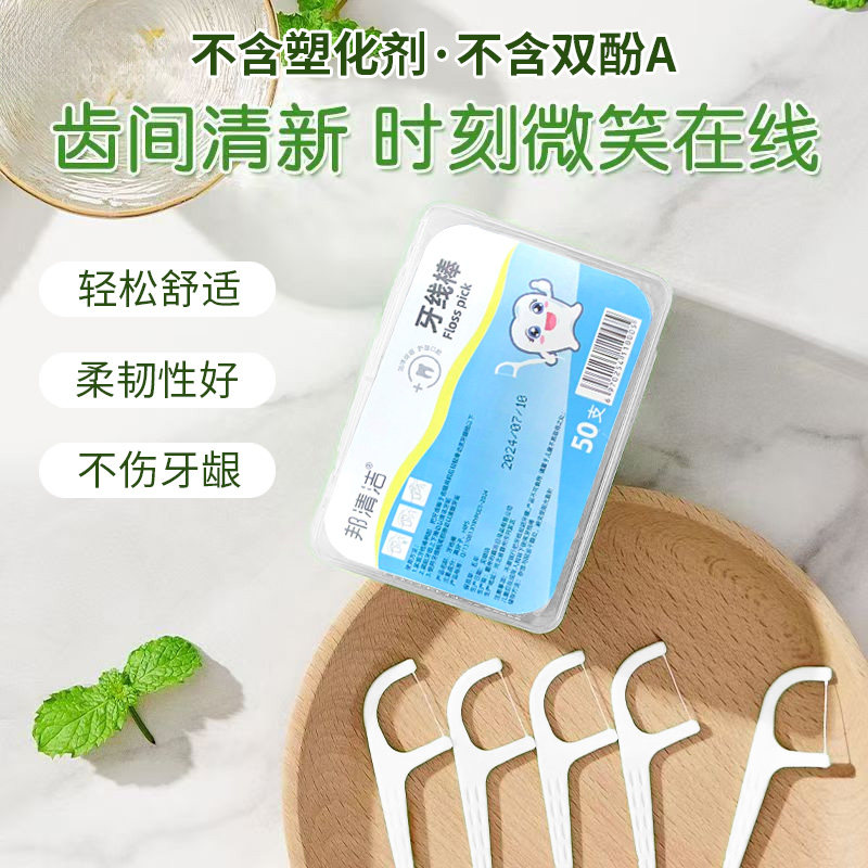 【邦清洁】一次性家用盒装口腔清洁牙线棒牙缝不变大便携超细牙线