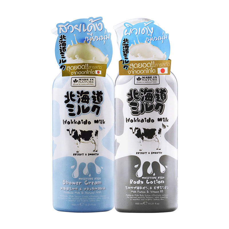 泰国美丽蓓菲北海道牛奶身体乳沐浴露套装持久留香女男士全身鸡皮