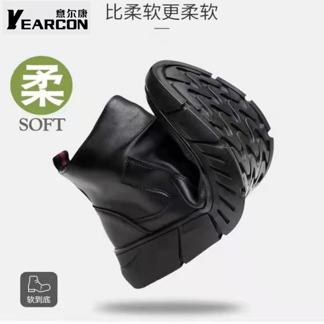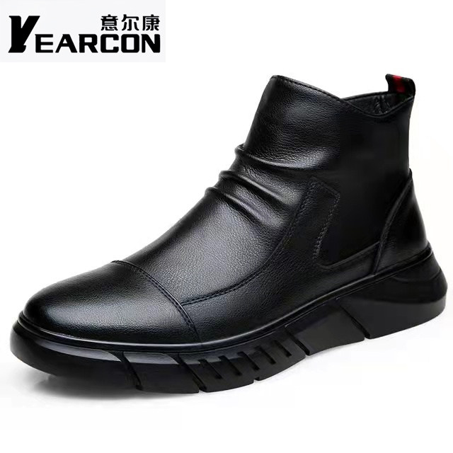 意尔康男鞋2025冬季新款加绒保暖靴子真皮软底软面男马丁靴雪地靴