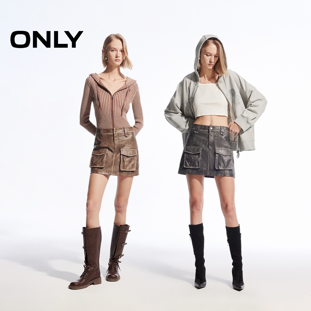 ONLY冬季时尚酷感做旧高腰PU超短裙半身裙女|12446S004