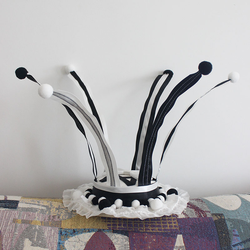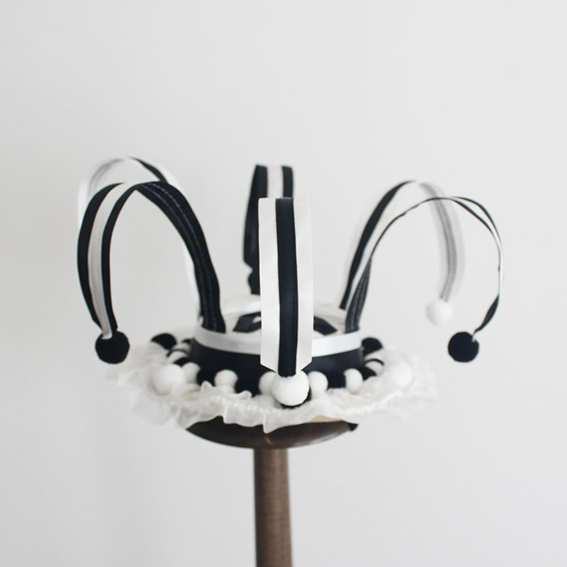 旋转虎虎黑白小丑帽子原创爱丽丝lolita发饰礼帽软妹洛丽塔扁帽