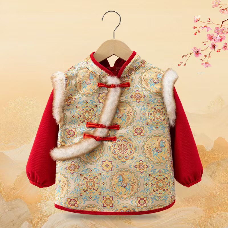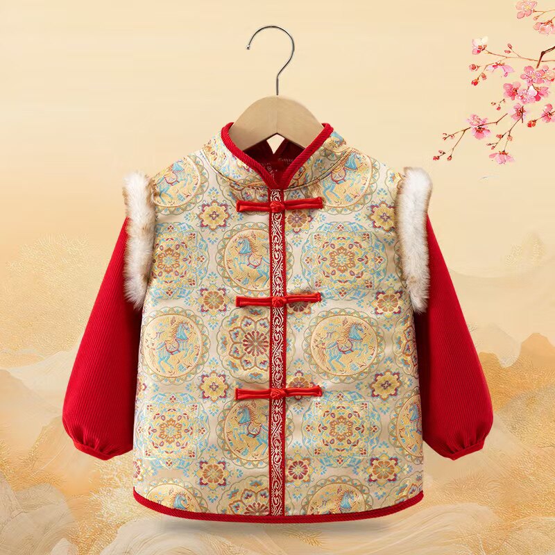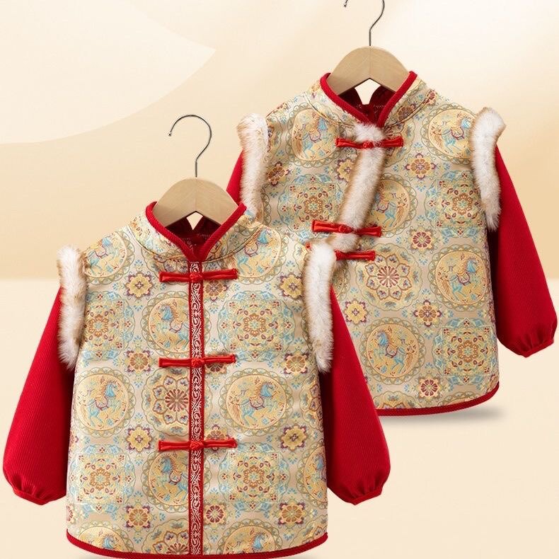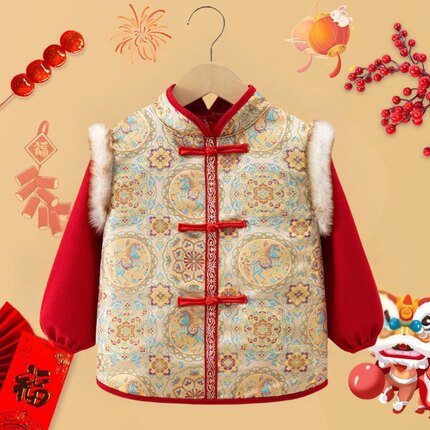 2025款中国风儿童罩衣秋冬洋气反穿衣宝宝拜年服唐装男女宝宝围兜