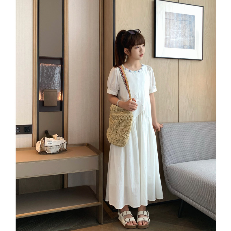 女大童度假风连衣裙2025夏季新款少女显瘦气质长裙学生韩版棉麻裙