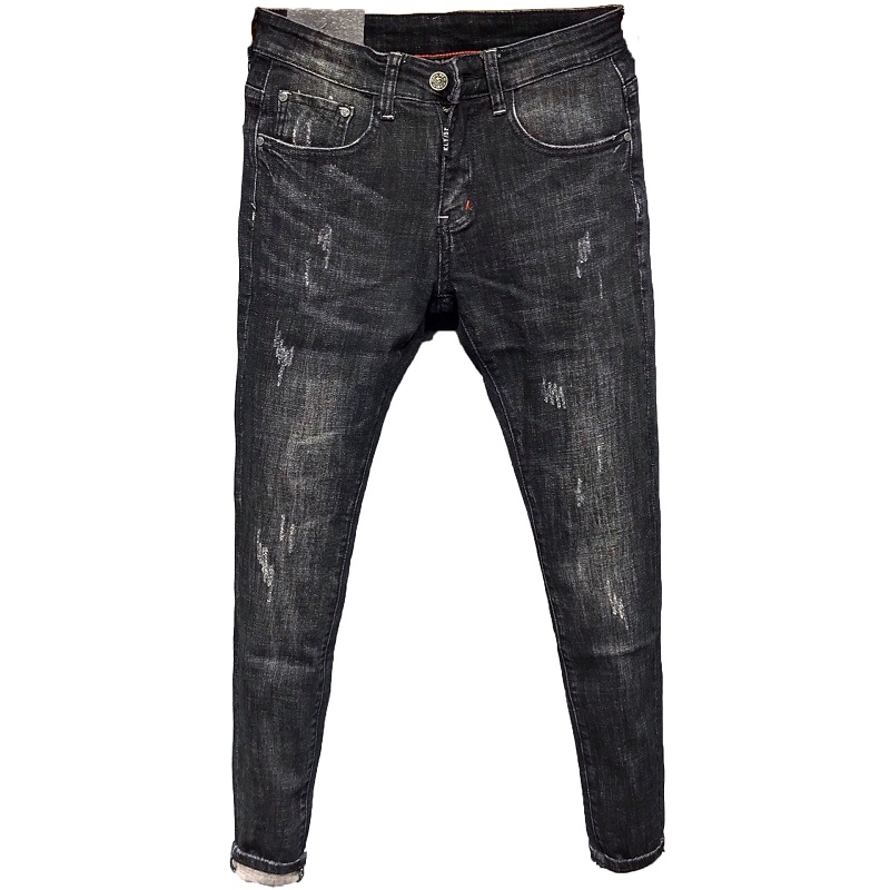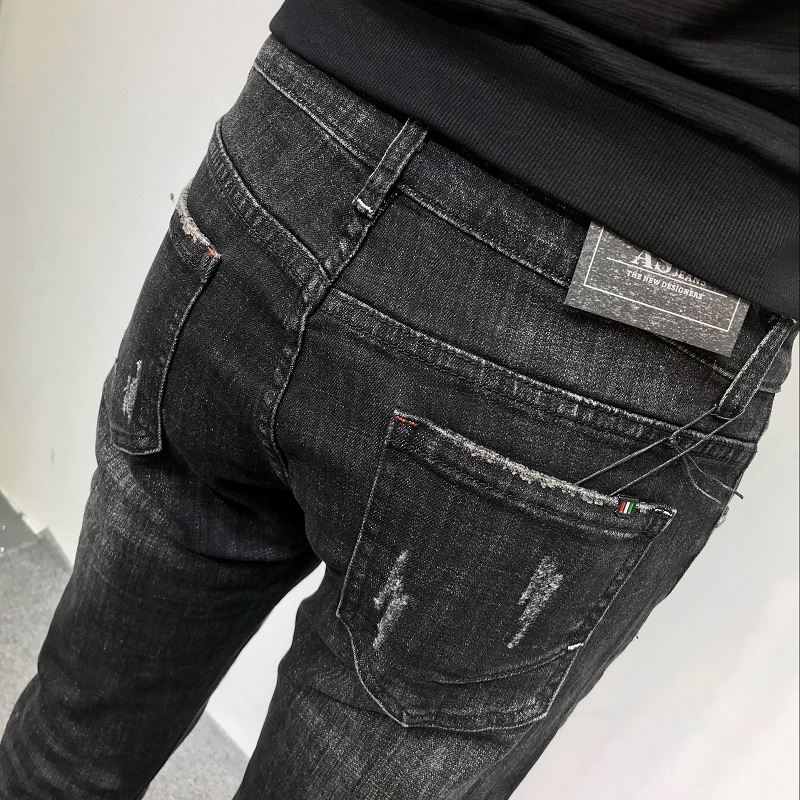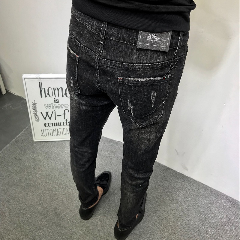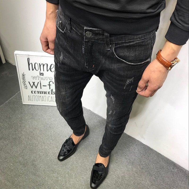 秋冬潮男社会精神小伙黑色紧身牛仔裤男士休闲潮流修身小脚九分裤
