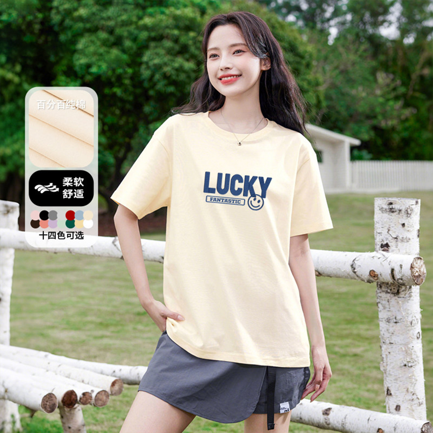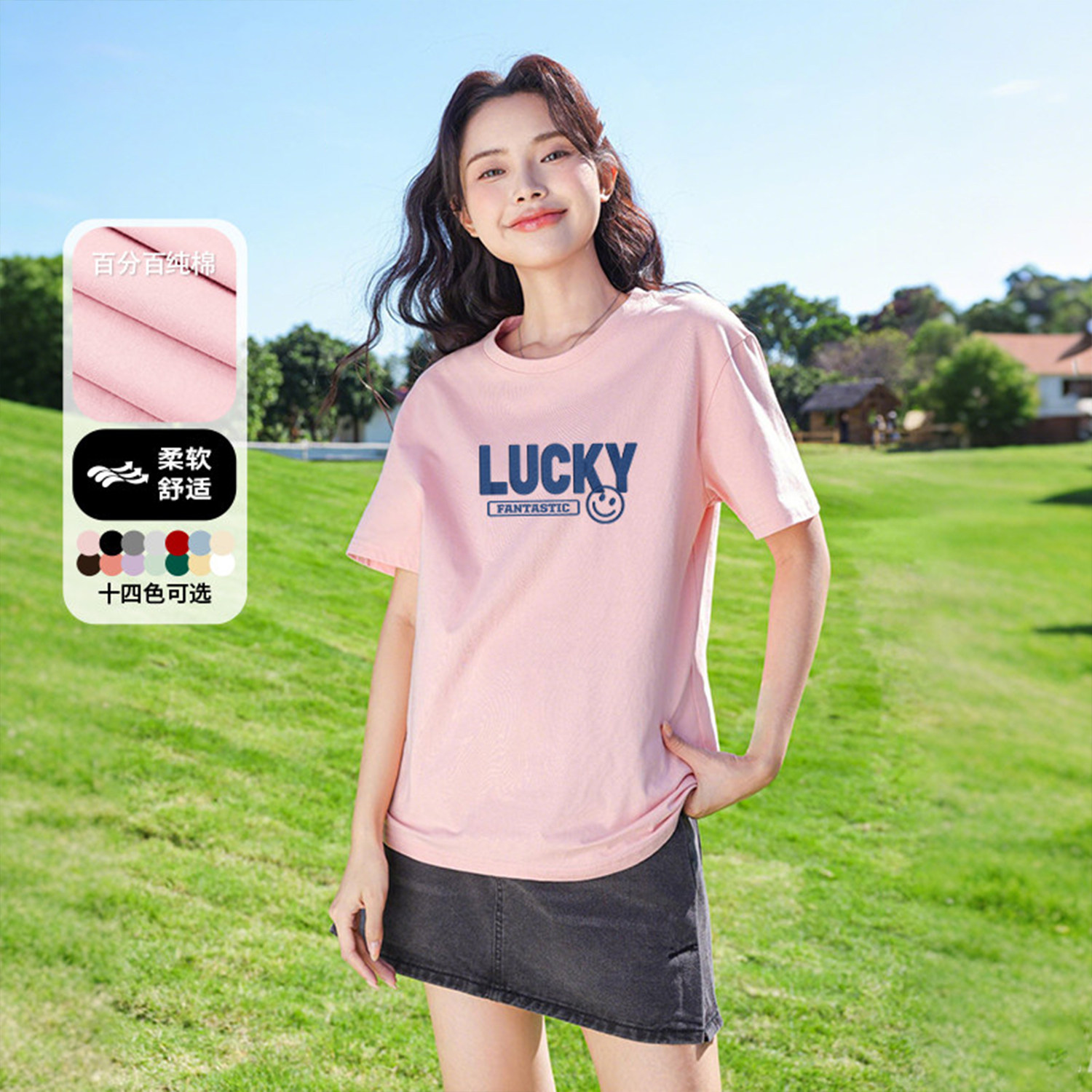 班尼路白色纯棉短袖t恤女夏季百搭通勤宽松美式休闲正肩上衣女款N