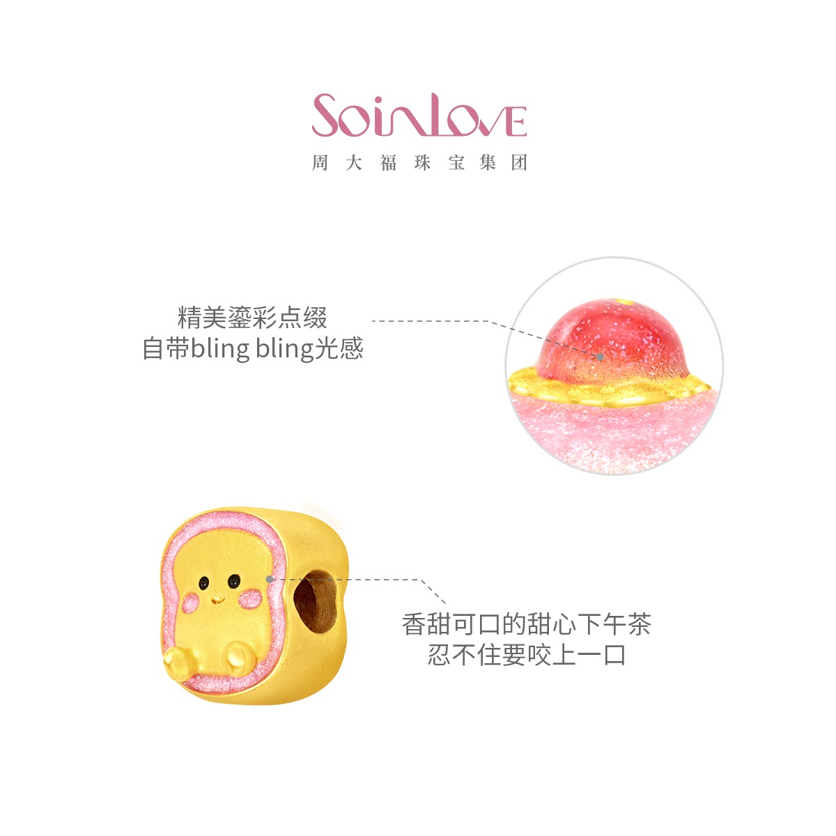 周大福SOINLOVE甜品可爱治愈甜心布丁吐司黄金足金转运珠圣诞礼物