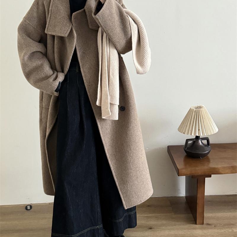 双面羊绒大衣女长款2025新款秋冬韩版宽松高级感立领羊毛呢外套