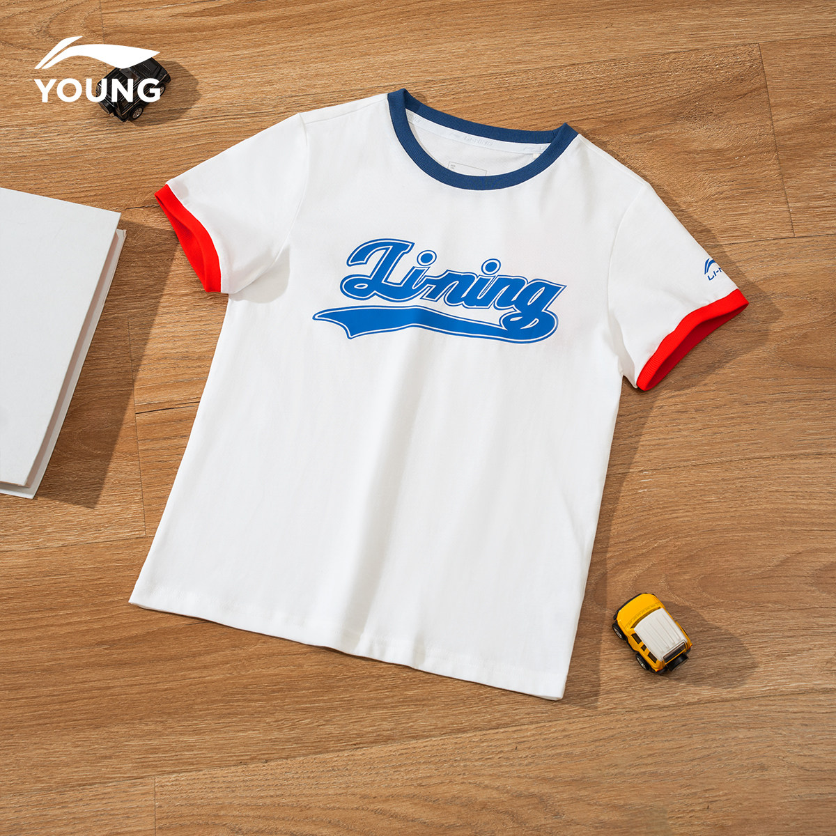 李宁儿童运动t恤2025款男童大童纯棉透气吸汗短袖青少年半袖童装