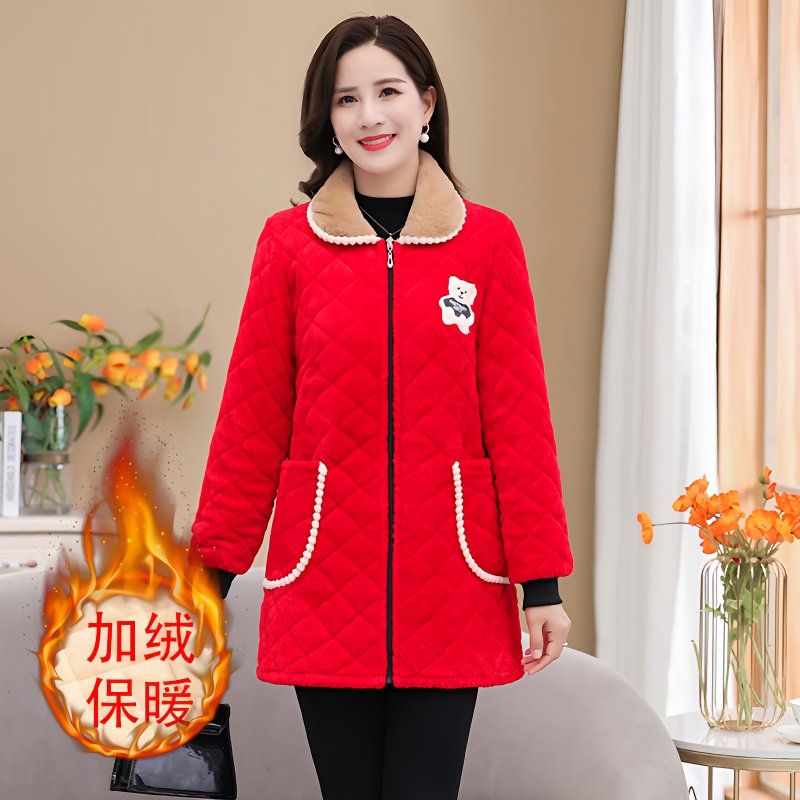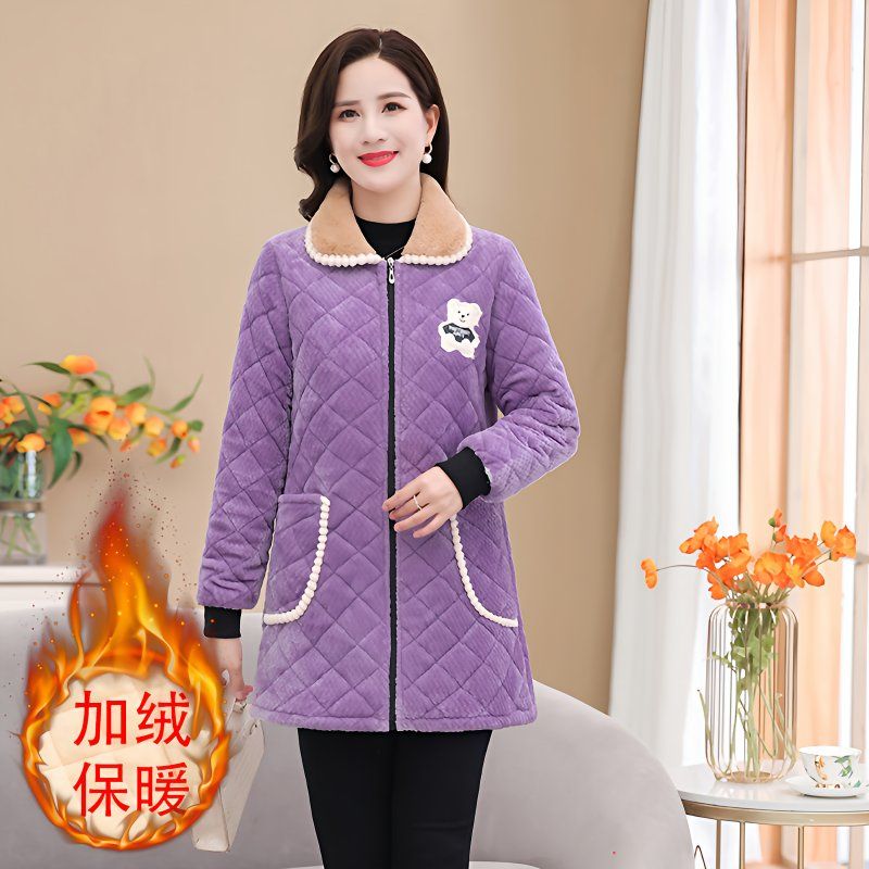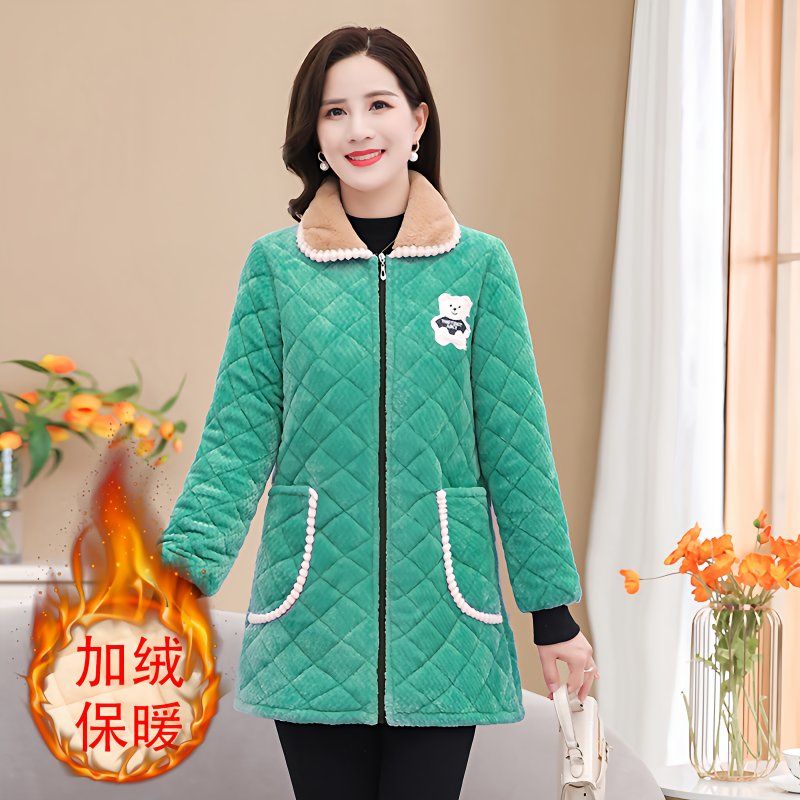 四川省服新款加绒罩衣女中长款棉袄冬天宽松毛领棉衣保暖居家棉服