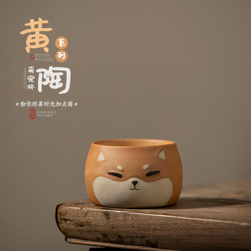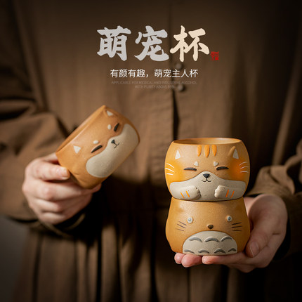 卡通手绘龙猫主人杯单杯粗陶个人专用茶盏围炉煮茶品茗杯喝茶杯子