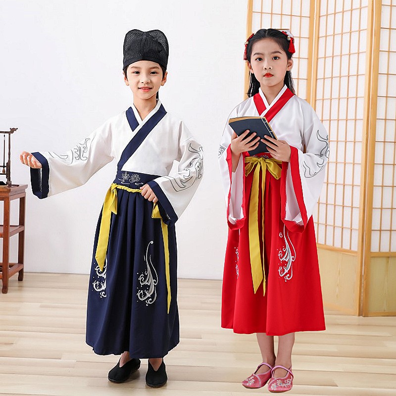 国学书童服装 儿童汉服男 复古中国风宝宝古装弟子规三字经演出服
