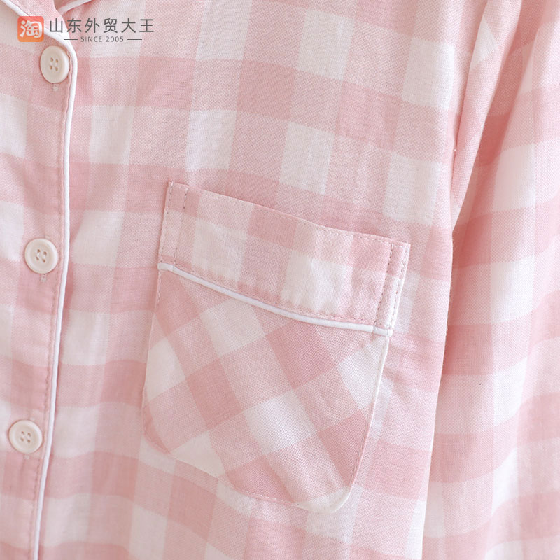日系无印风格子情侣睡衣女纯棉纱布男士长袖春夏季薄款家居服套装