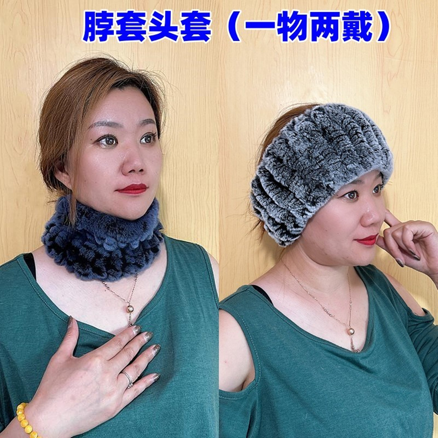 俄罗斯真獭兔毛脖套女男冬东北保暖护耳真毛围巾弹力发带毛绒头套