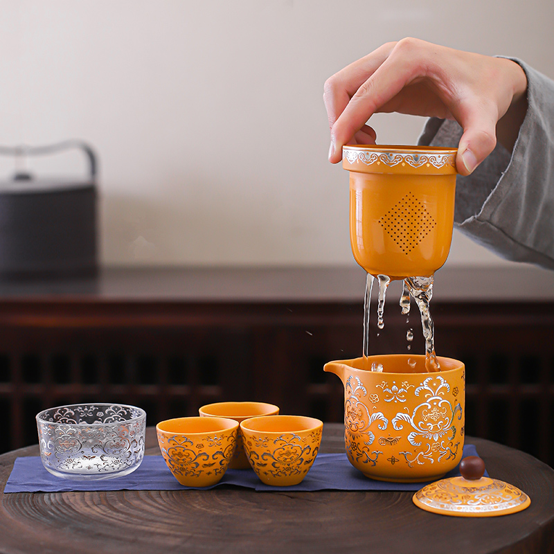 锦铭陶瓷+紫砂旅行茶具+便携式