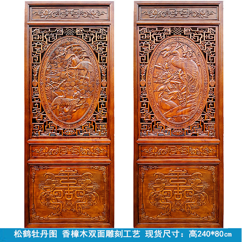 木雕屏风玄关隔断实木镂空花格门