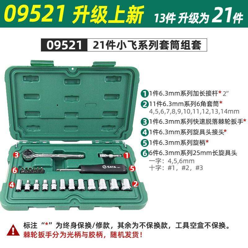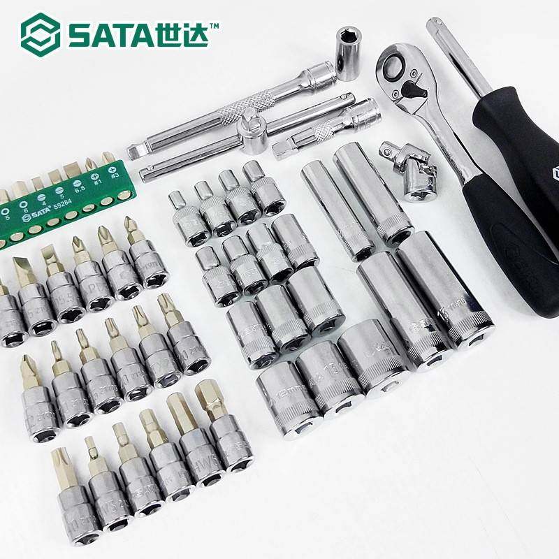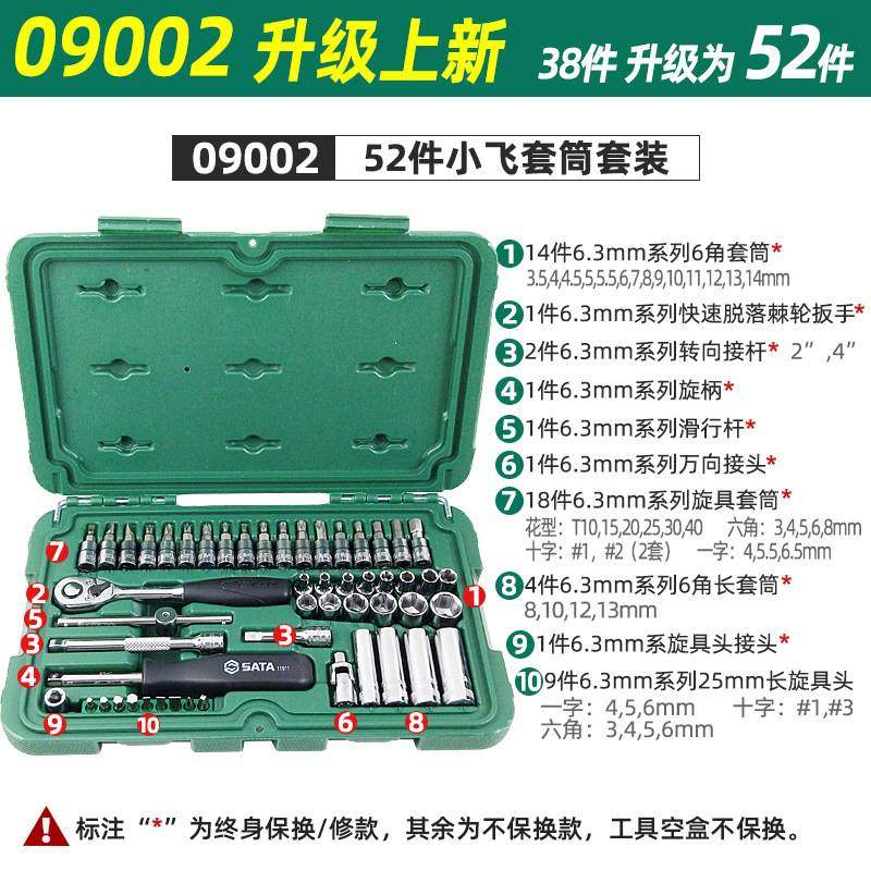 SATA世达工具36件52件套小飞套装6.3mm系列套筒组套09001 09002