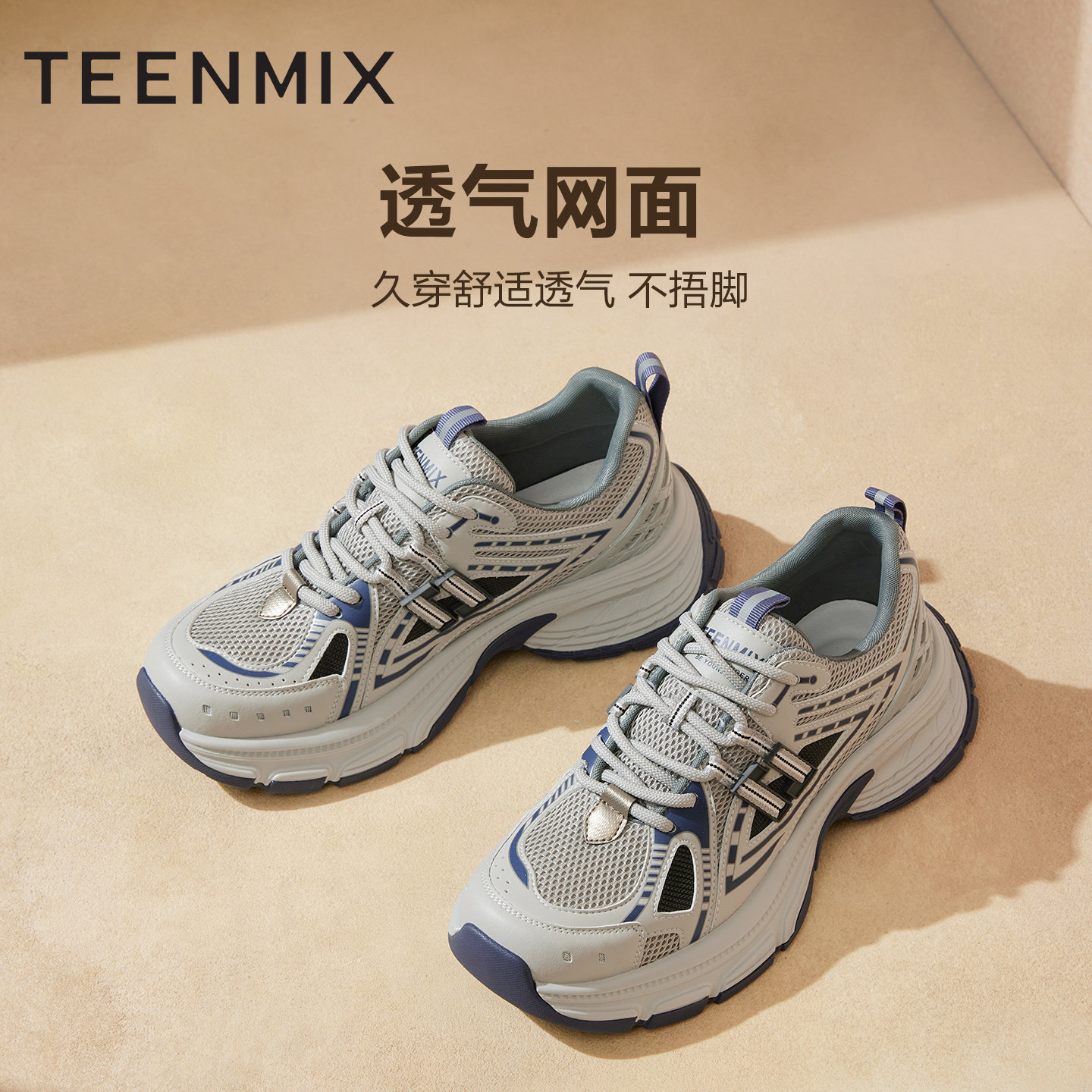 天美意2025秋新款拼色帅气老爹鞋运动轻跑男休闲鞋LDX39CM5