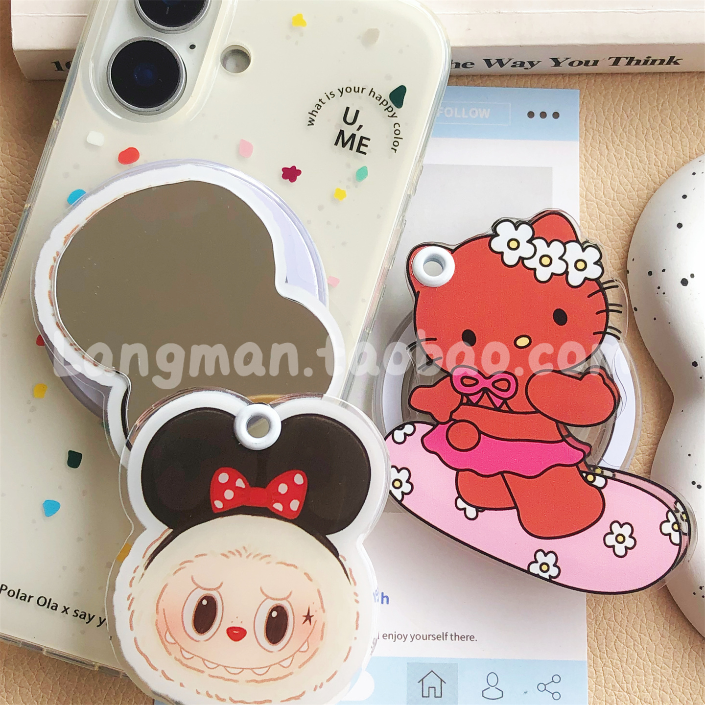 可爱卡通凯蒂猫拉布布镜子手机磁吸气囊支架适用magsafe指环扣女