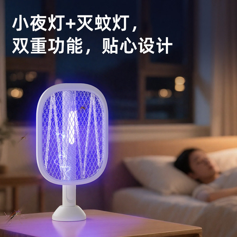 一件折叠伸缩电蚊拍充电式家用小夜灯紫光灯灭蚊器床头灭蚊灯
