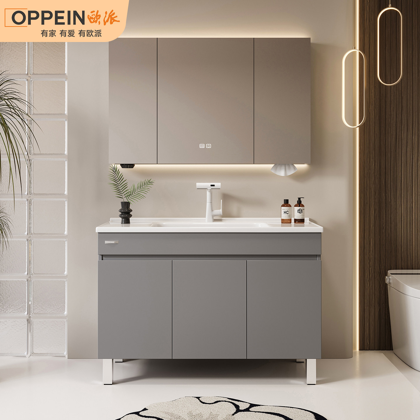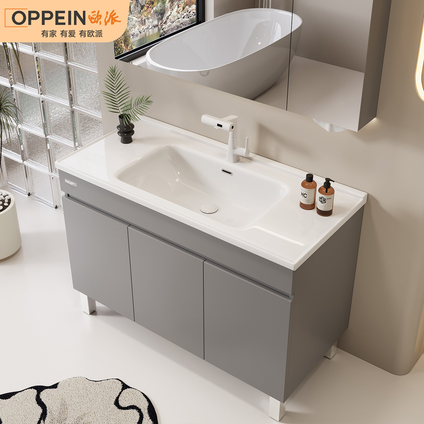 欧派现代简约陶瓷一体盆落地柜