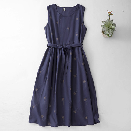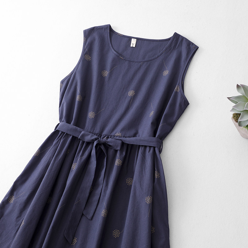 2026夏季新款简约宽松气质度假背心泡泡印花连衣裙女
