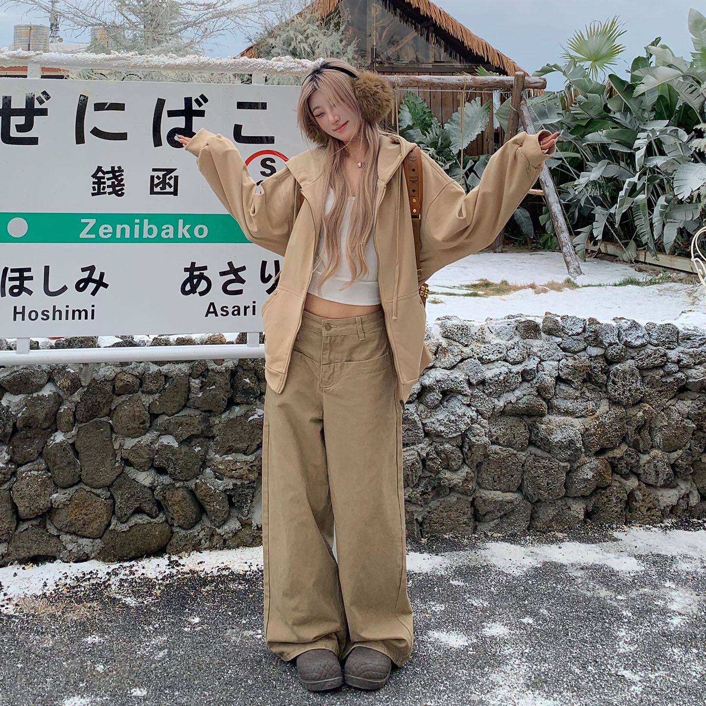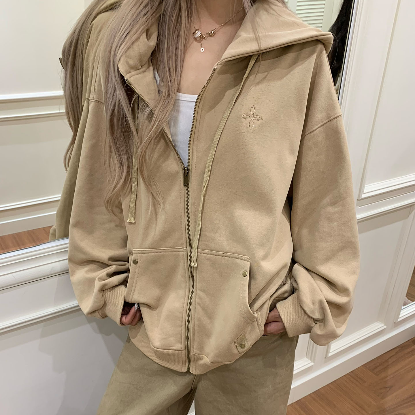 饭饭又饿了复古刺绣连帽卫衣外套女秋季慵懒松弛宽松显瘦开衫上衣