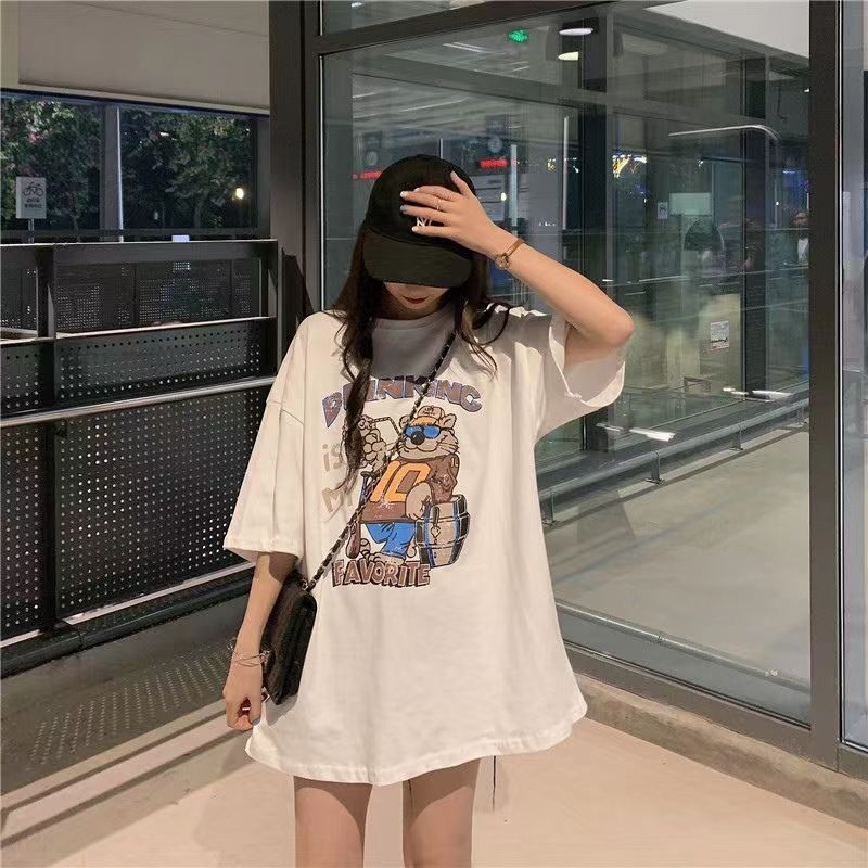 短袖欧货大版中长款t恤女遮屁股大码300斤高个子加长版T恤裙宽松