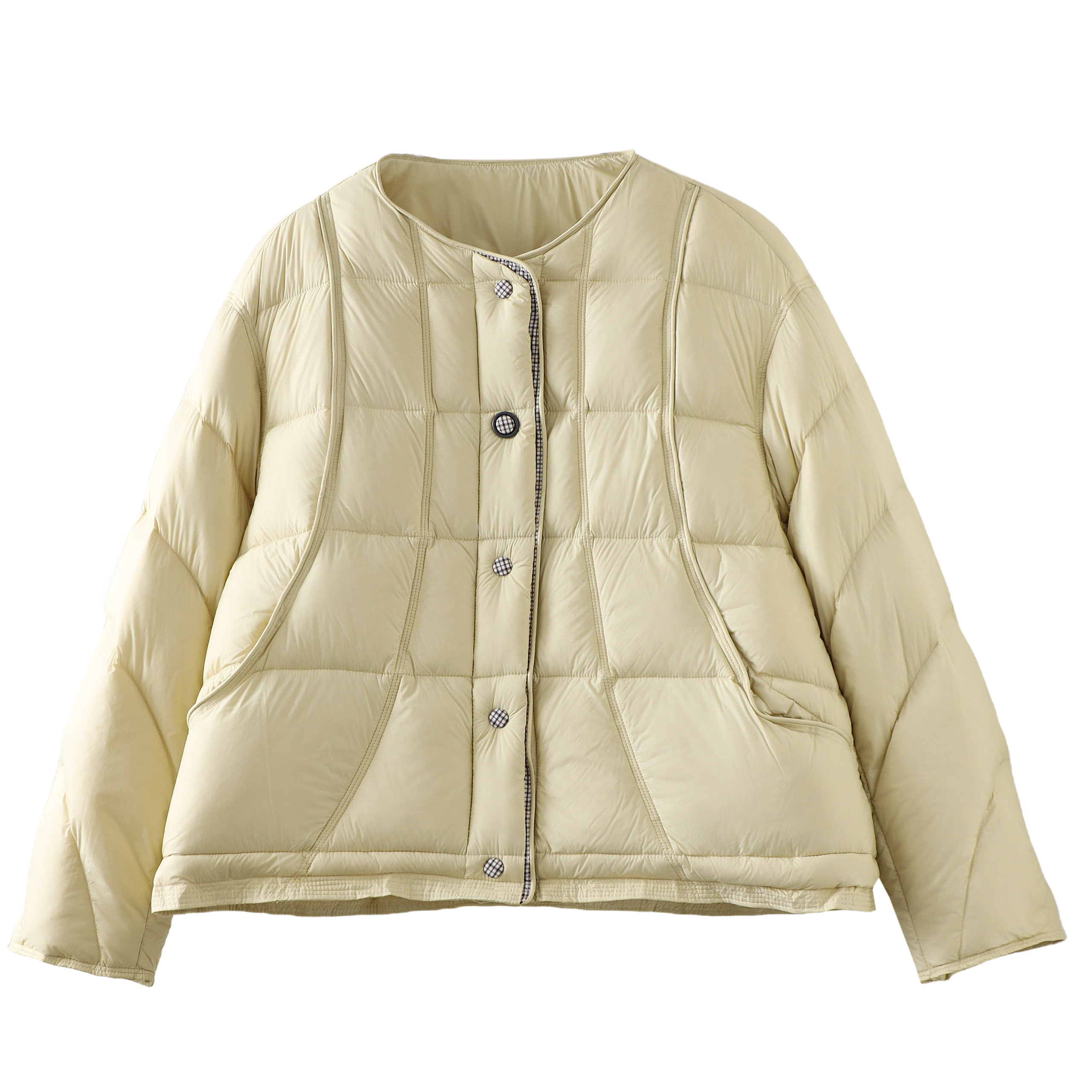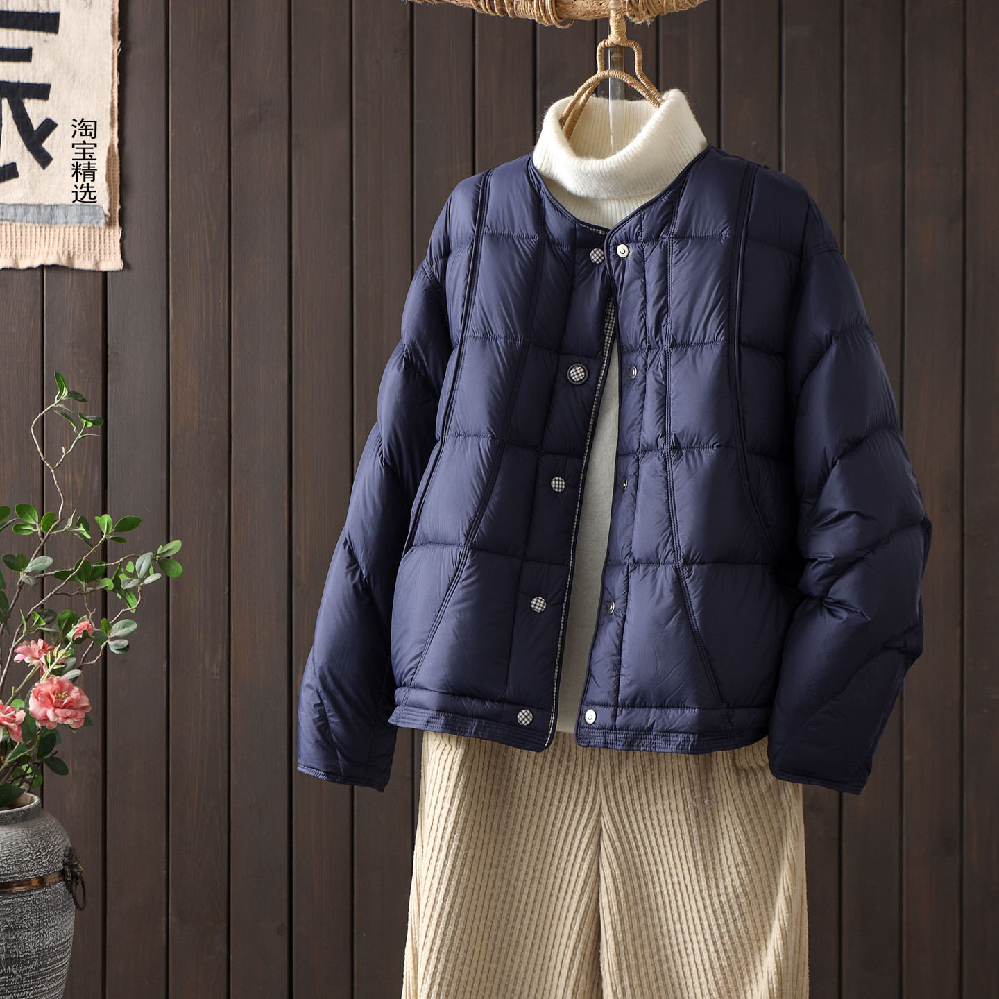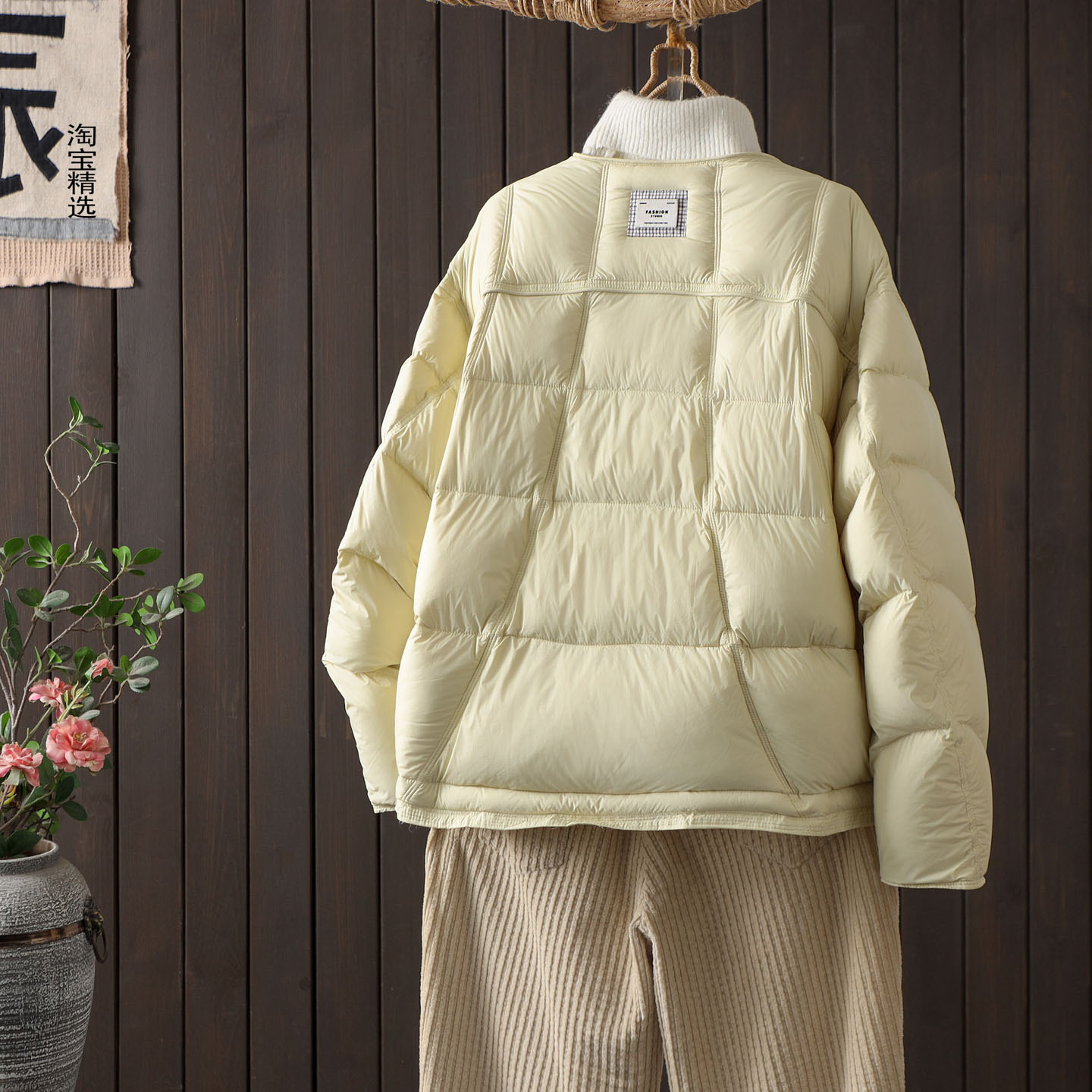磁吸扣方块羽绒服女短款2025冬季新款韩版宽松圆领面包服加厚外套
