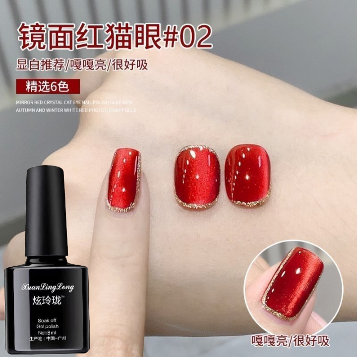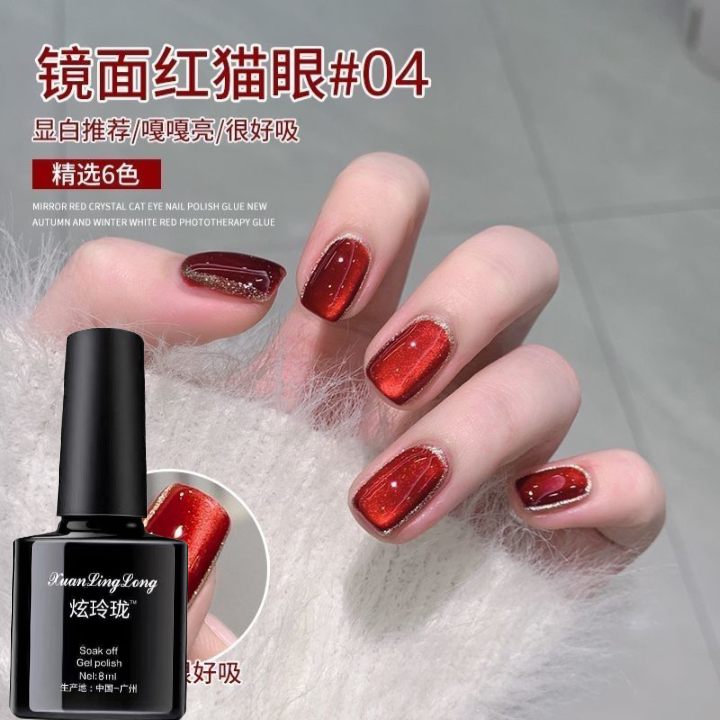 镜面红猫眼秋冬款指甲油胶2025年新款高级感车厘子红色美甲店专用