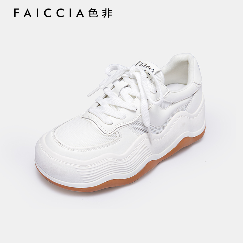 色非2023新款鞋子女潮百搭小众波浪底面包鞋真皮小白鞋板鞋B571D
