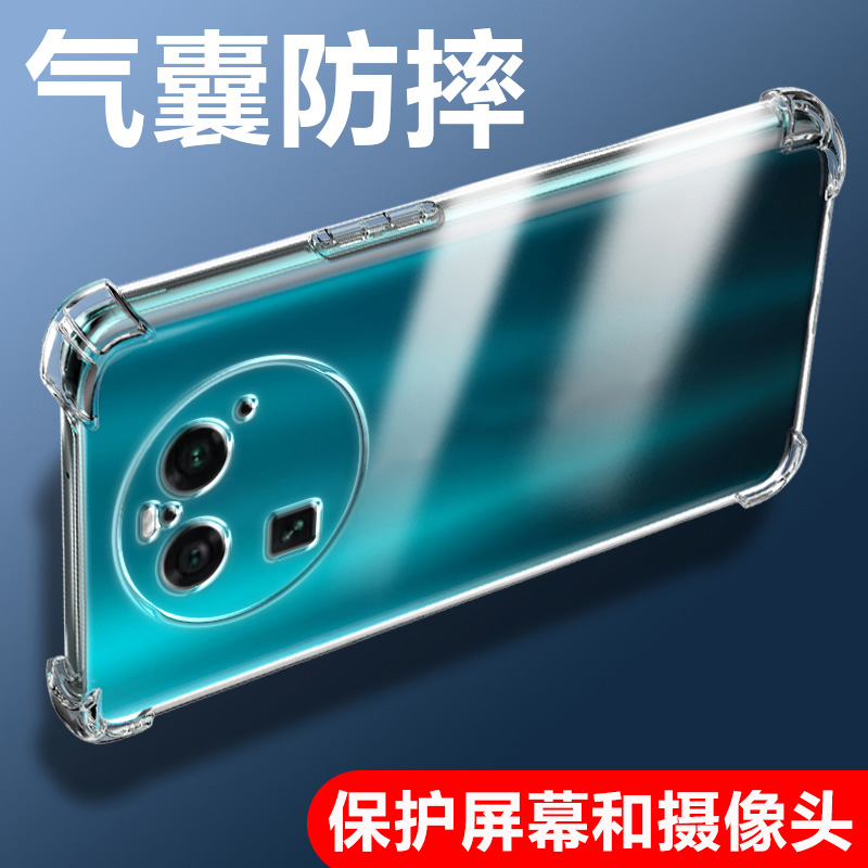 适用OPPO FindX6气囊防摔FindX7Ultra手机壳至尊版x5pro新款X6Pro男女X3Pro保护套透明天玑版硅胶防摔全包镜