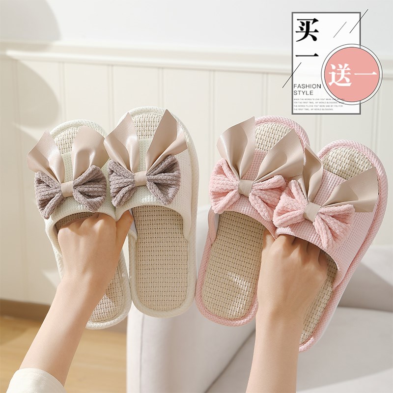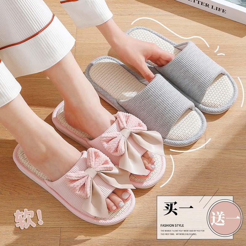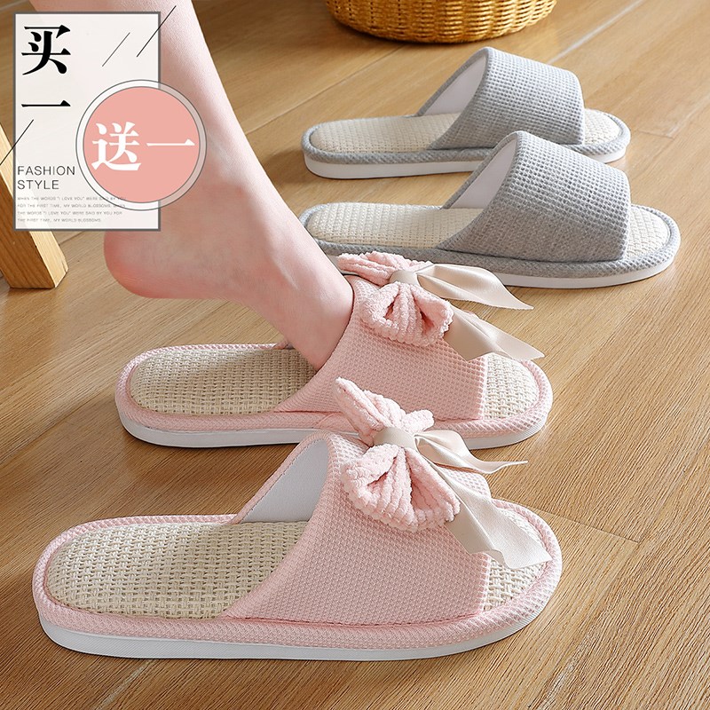 买1送1亚麻拖鞋女款夏天室内家居家静音地板防滑情侣吸汗棉布拖男