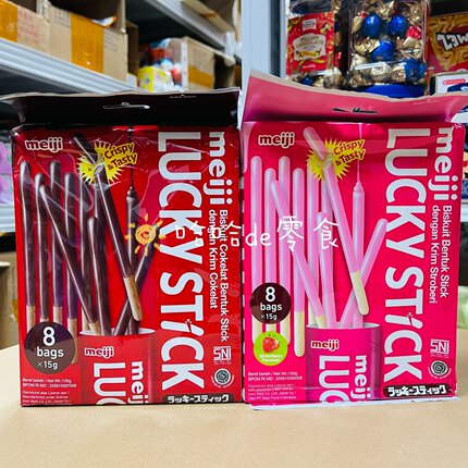 2袋包邮明治meiji乐喜巧克力草莓饼干条独立包装棒棒饼干涂层零食