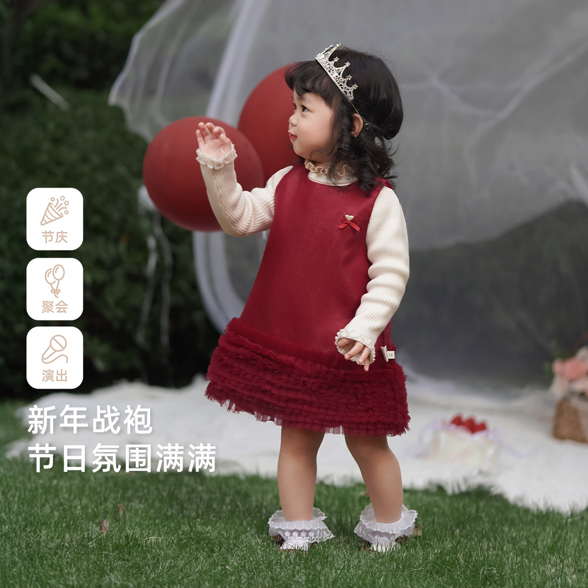 [抑菌锁温]周岁女宝礼服加绒儿童秋冬红色公主连衣裙女童裙子冬装