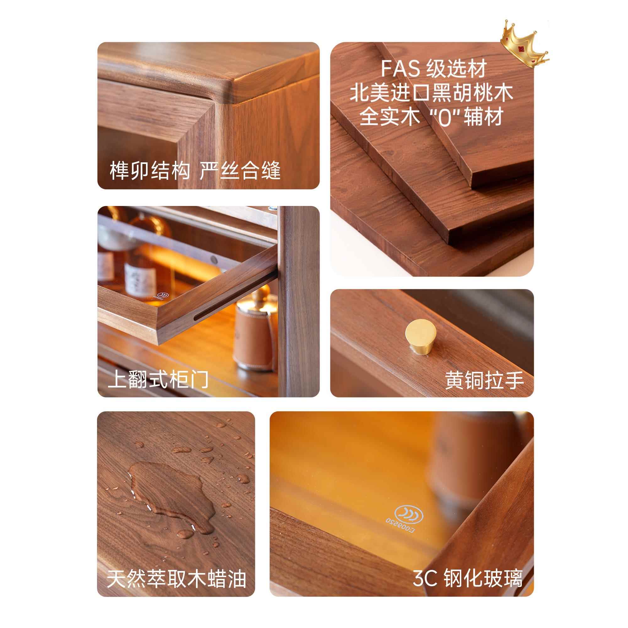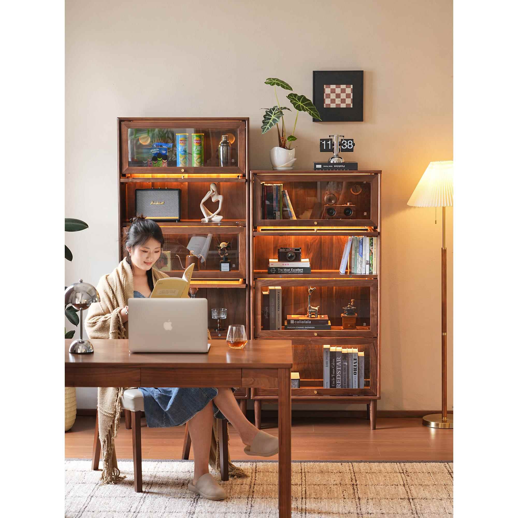 北美黑胡桃实木书柜收纳储物柜多功能餐边柜客厅酒柜自由组合柜子