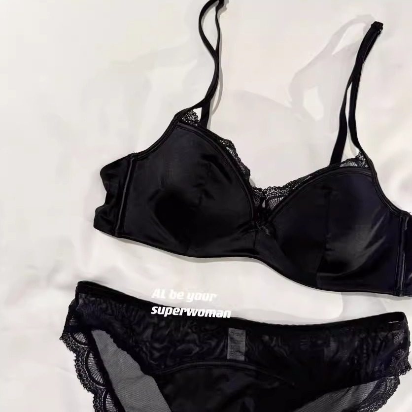 2024秋冬法式纯欲内衣女蕾丝薄款聚拢小胸防下垂收副乳文胸套装